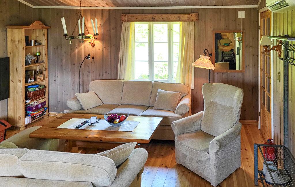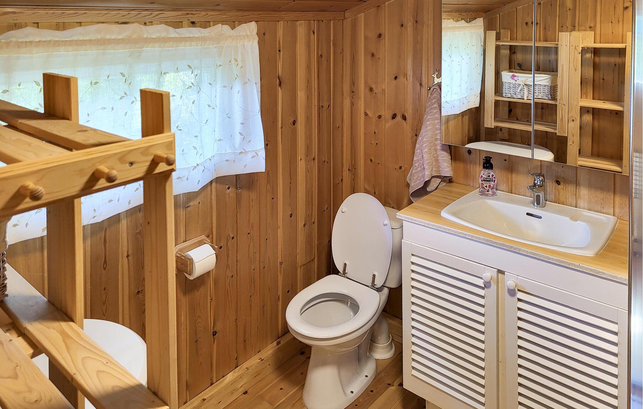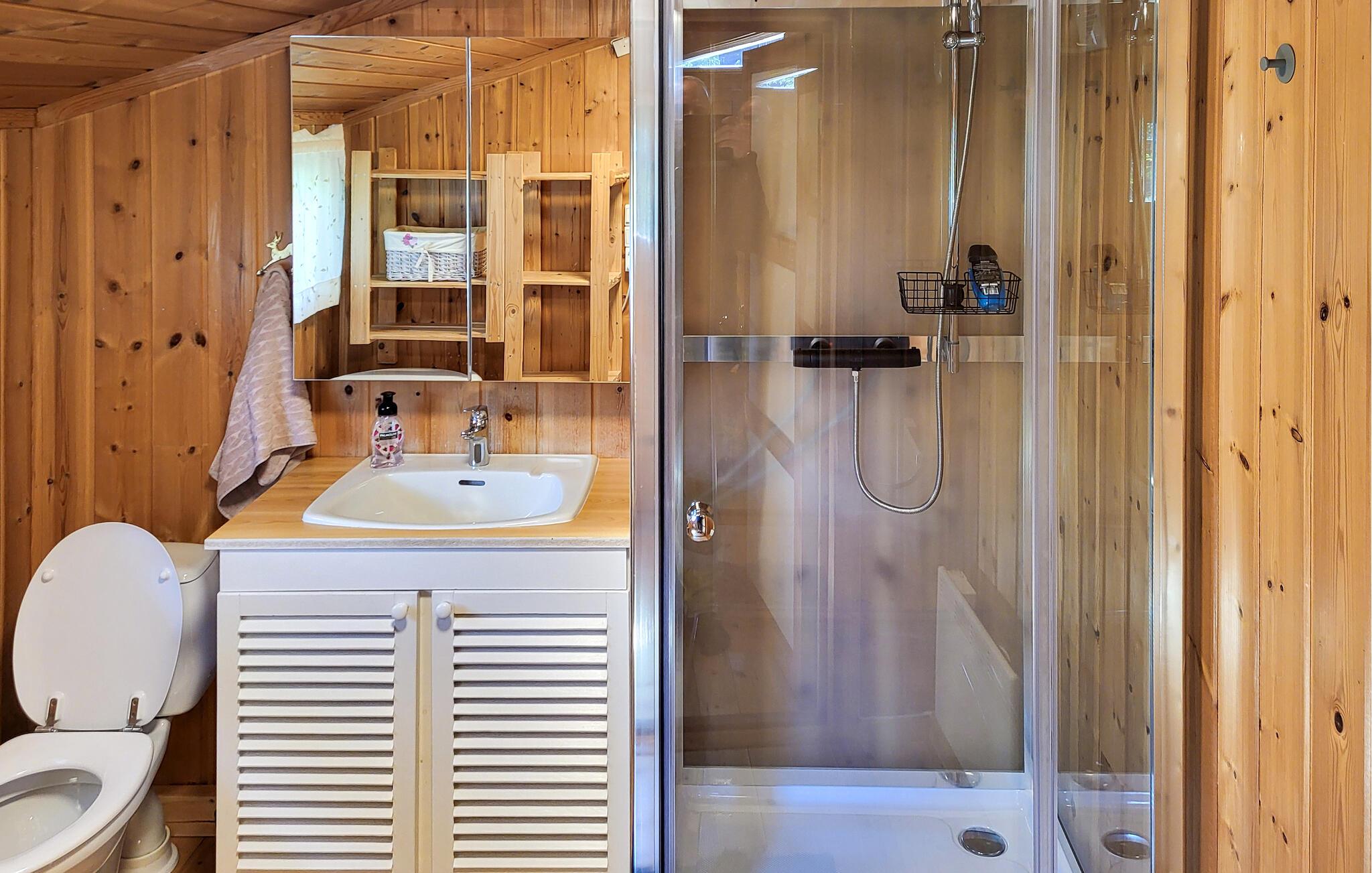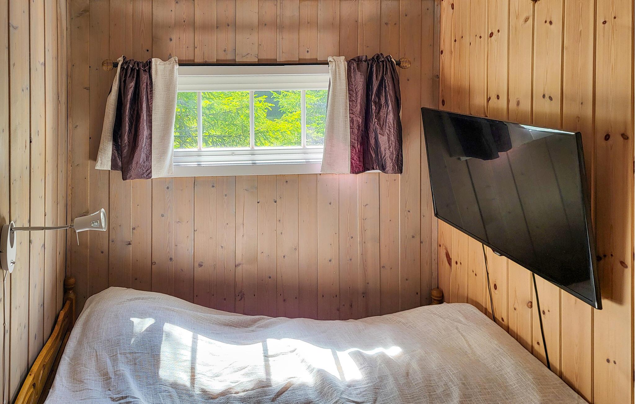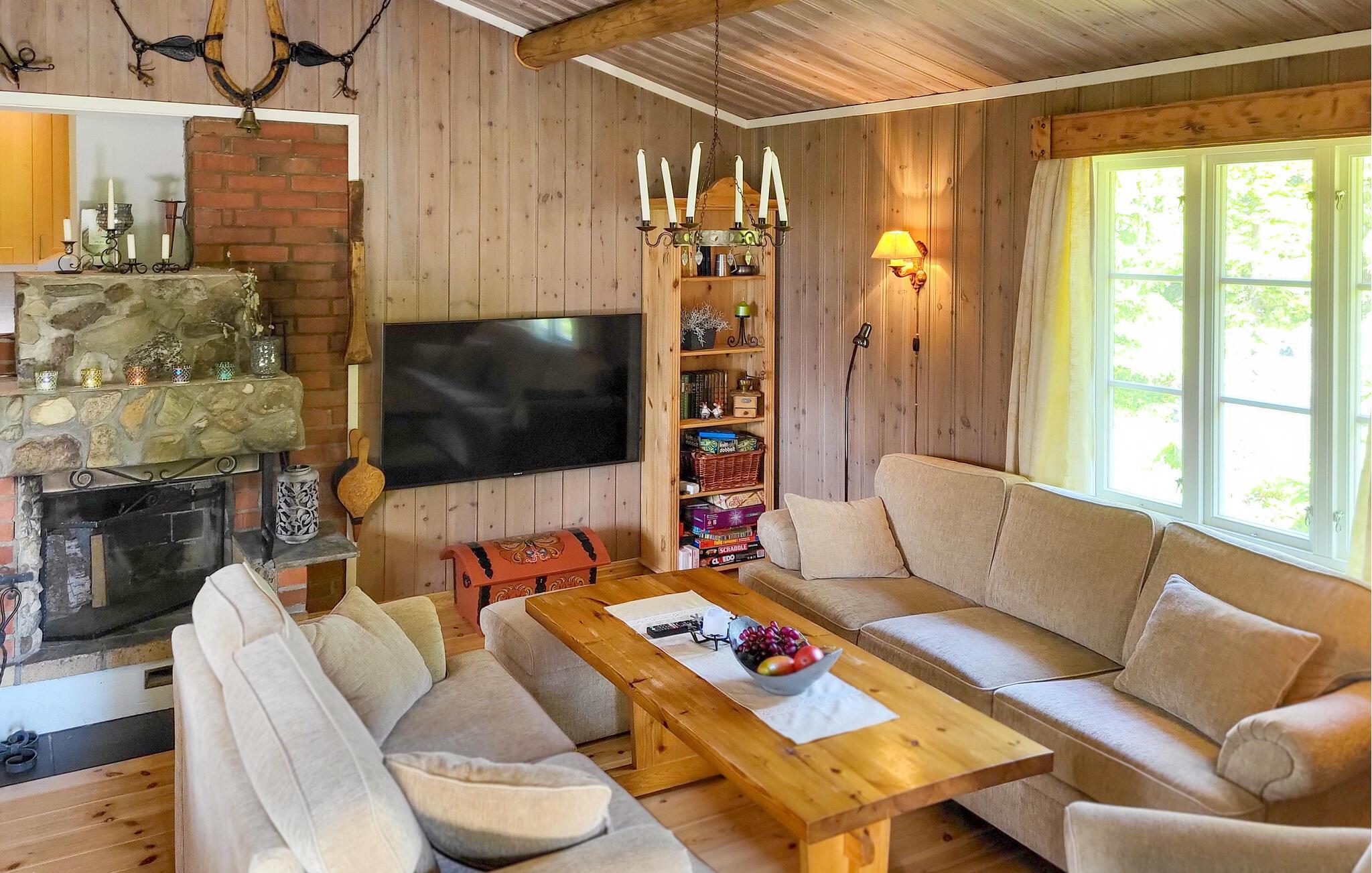 Gemt væk blandt høje grantræer byder dette hyggelige feriehus jer velkommen med rustik komfort, som I kan nyde med familien til harmoniske måltider og hyggelige spilleaftener foran pejsen. Tryll solide måltider frem i det praktiske køkken og stream en film efter en lang dag udendørs.