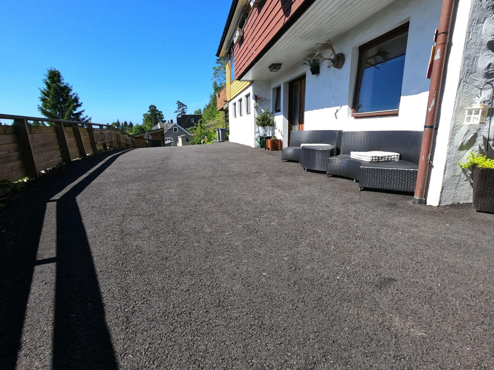 The cottage is located about 25 km south of the centre of Bergen, in Hagavik, a small village near Osøyro, with a slightly elevated position and a view over the landscape to the Folgefonna mountain massif. Extensive fishing, diving and hiking area with countless islands. The fjords are dotted with countless inhabited and uninhabited islands all the way to the open sea. A hiking area starts right behind the house. The detached house has 2 floors with separate entrances. The landlord lives on the second floor. A steep driveway about 50 metres long leads to the house.