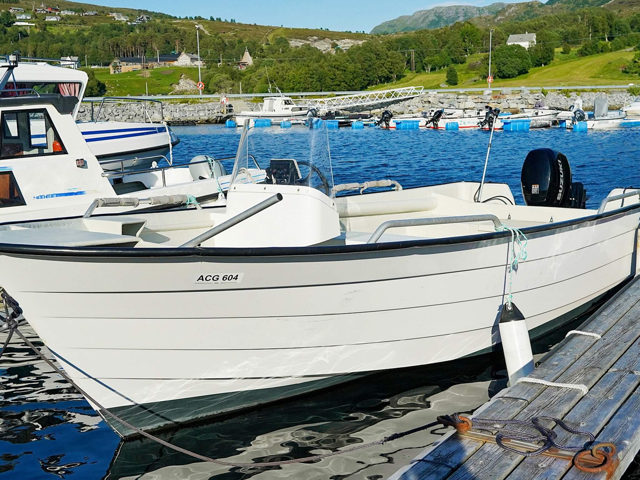 Båt til leie (ikke inkl. i prisen): + 1x 21 fots Øien 620F med 60 HK Suzuki 4-taktsmotor, 7-toms Garmin kartplotter, GPS og ekkolodd. Enda en båt kan leies på forespørsel. Leie av båt betales til eier ved ankomst. Flytevester er inkludert i leie av båt. Avstand til båt: 140 meter. Overdekket fileteringsplass for fisk med lys og rennende vann.