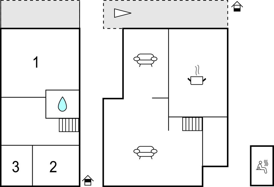 Badeværelse 3m2 (nr. 1) - WC. Varmt og koldt vand. Bruser