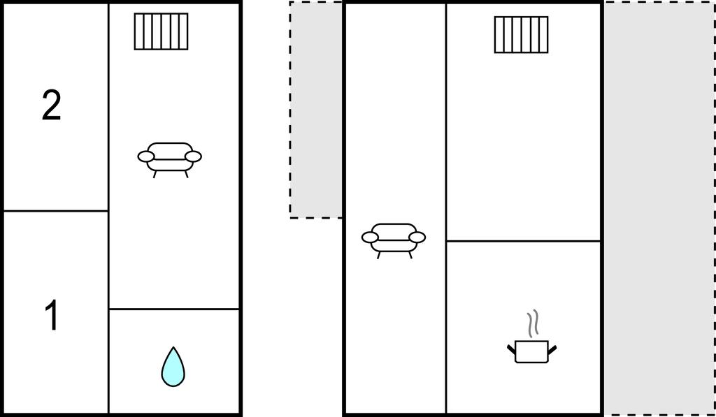 Opholdsstue - 2 Sovepladser. (Enkeltseng(e)).