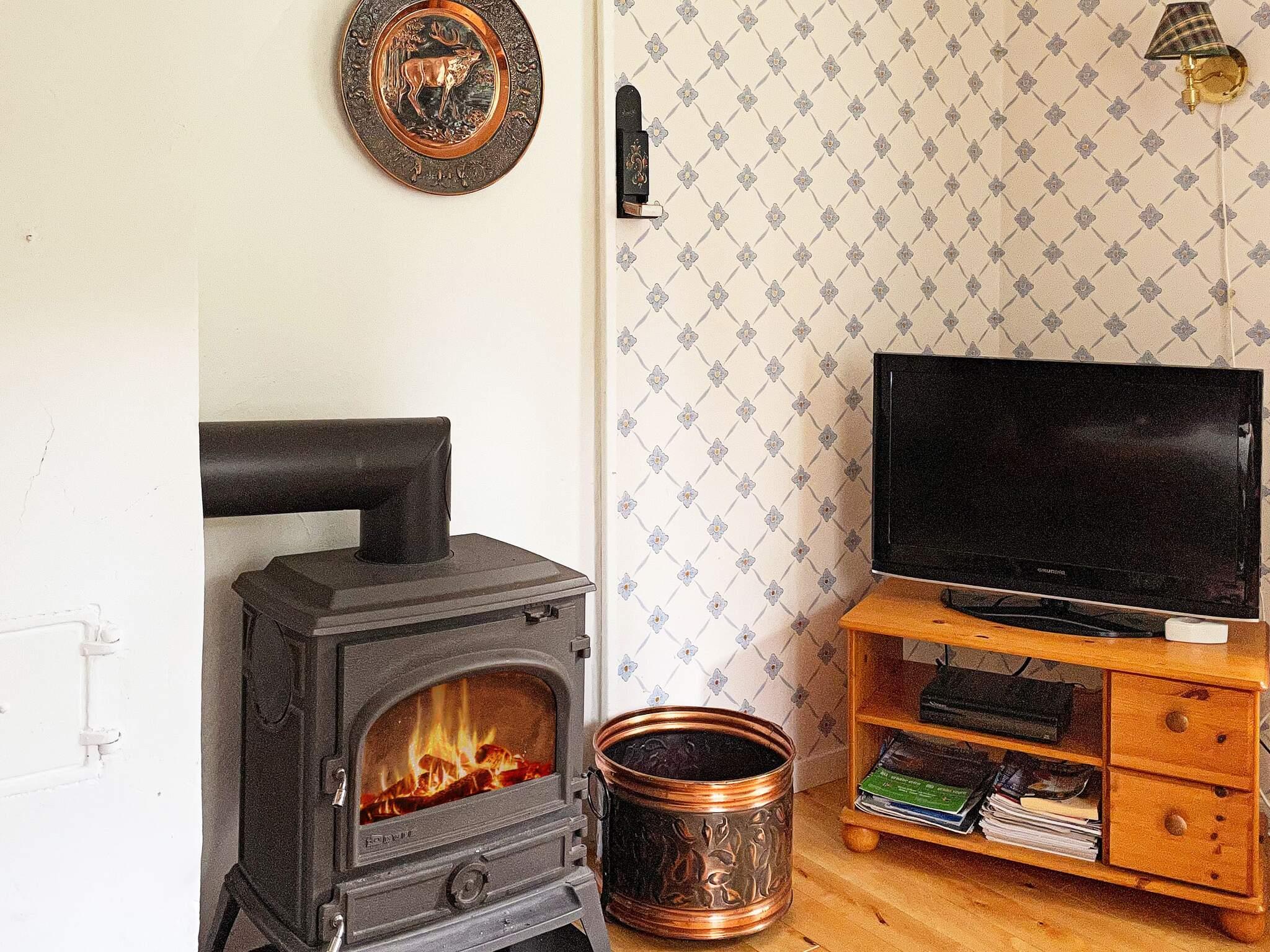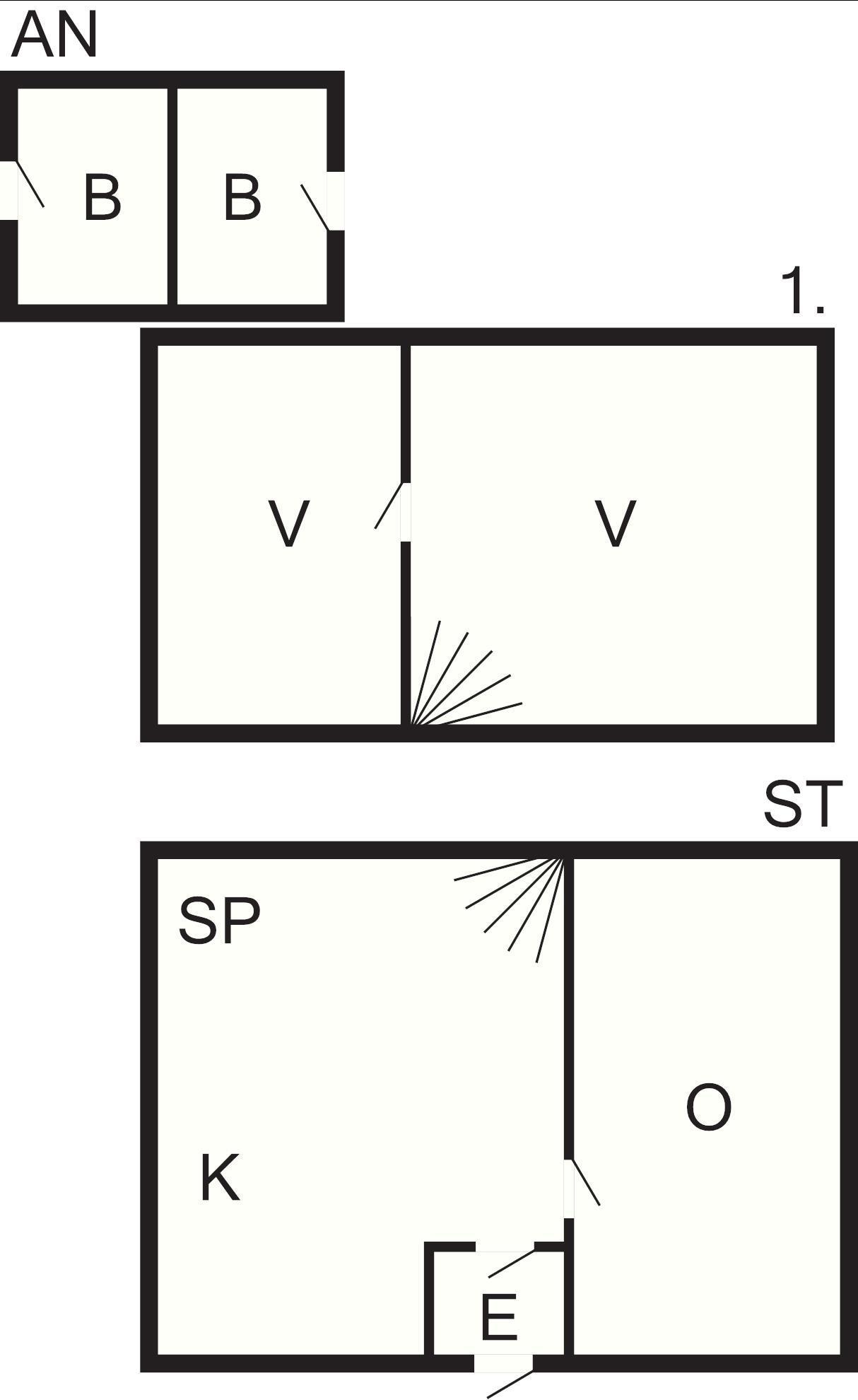 1 Opholdsstue: 12 m2, brændeovn, tv