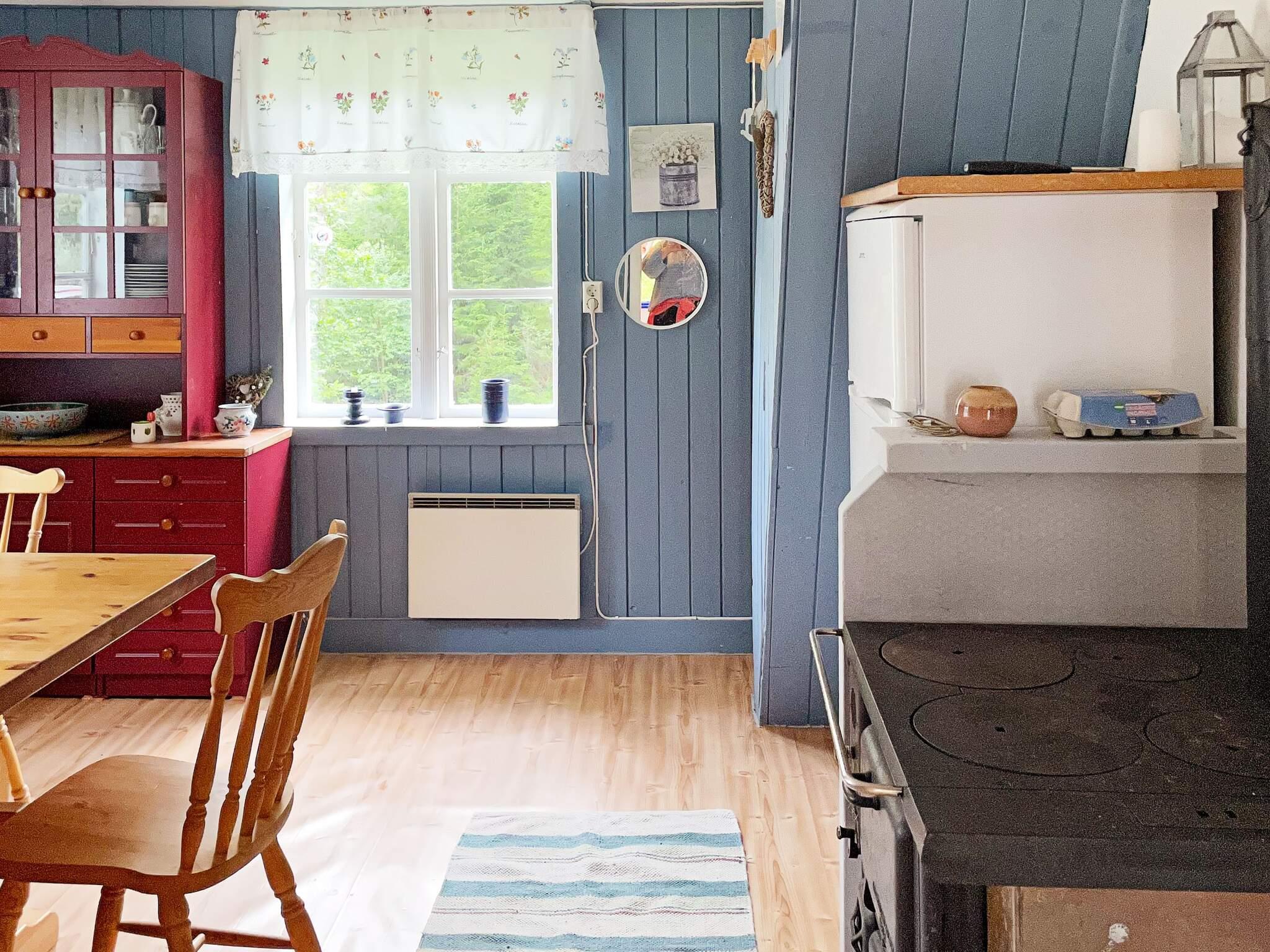 Huset er eldre, men velholdt, og består av ett romslig kjøkken og stue i første etasje. Koselig peis, ved følger med. I andre etasje er det to soverom, ett med dobbeltseng og ett med køyesenger. Det er ett anneks på tomta med bad som inneholder håndvask og dusjkabinett. Det er også ett toalettrom med tørrklosett (hytta har ikke WC).