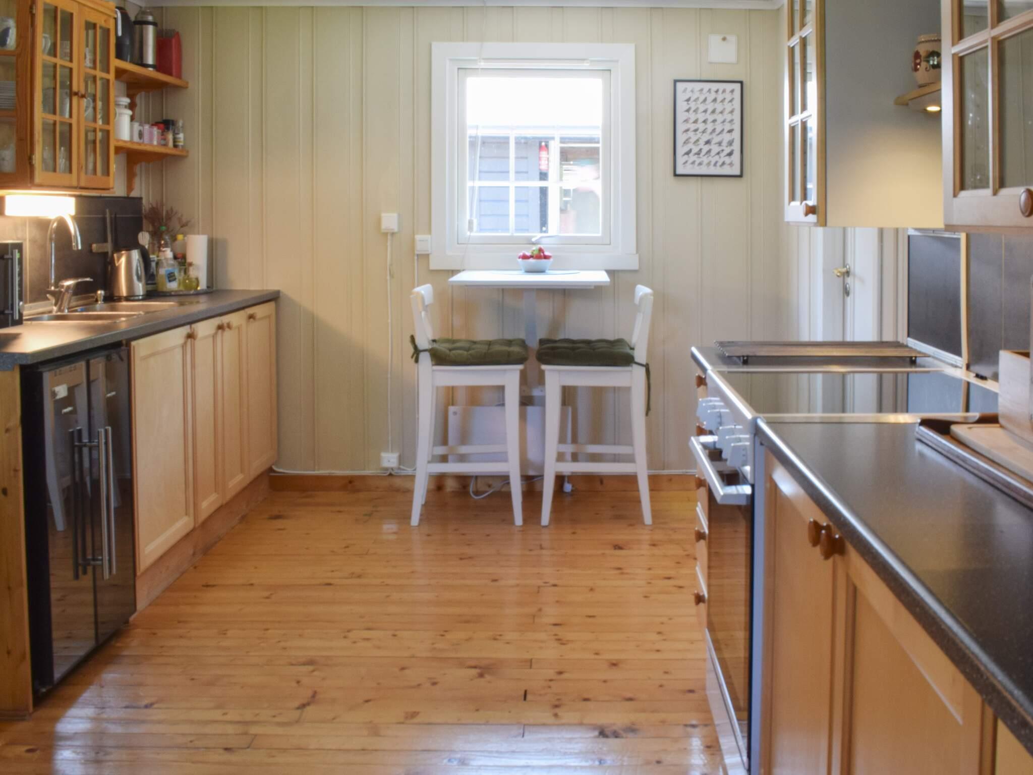 Hytta inneholder gang, stor stue med sofakrok og spisestue. Hyggelig vedovn og peis i stua. Det er smart-TV i stuen og internett, som gjør det mulig å streame det man vil se på TV. Kjøkken med liten spiseplass, oppvaskmaskin og alt man trenger av kjøkkenutstyr. Et soverom med dobbeltseng, et med køyeseng og et soverom med enkeltseng og gjennomgang til badet. Dette rommet har en rullgardin som kan trekkes ned ved sengen for å gjøre det mer usjenert når andre skal på badet. Badet er nyoppusset med toalett, vask og dusjkabinett, varmekabler i gulvet. Veranda samt stor platting og gode hagemøbler og grill.
