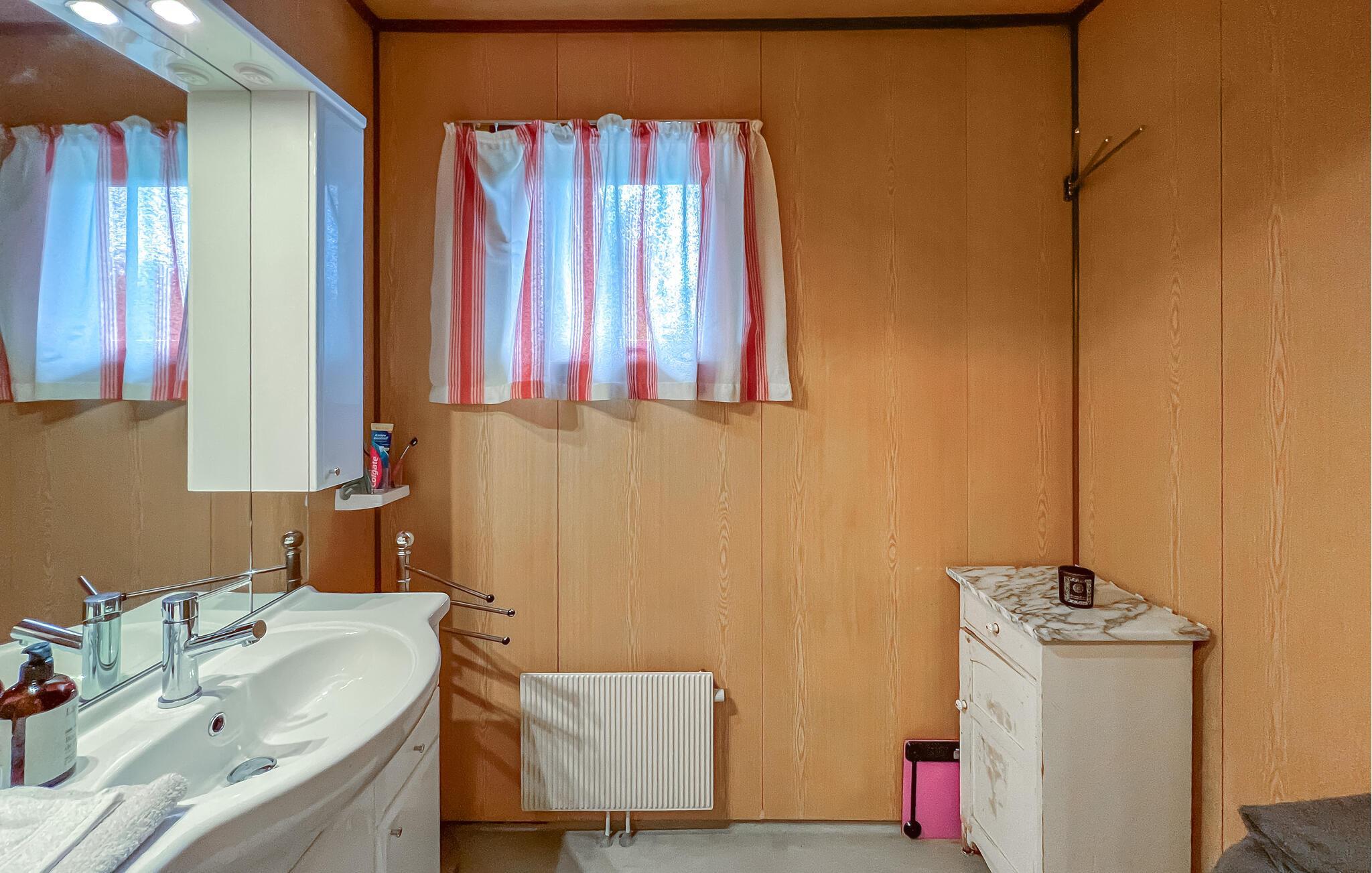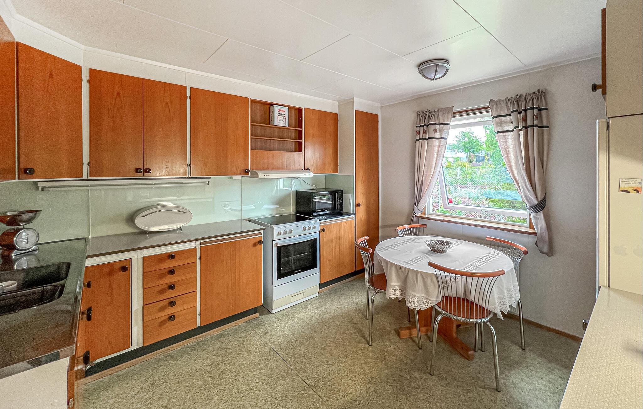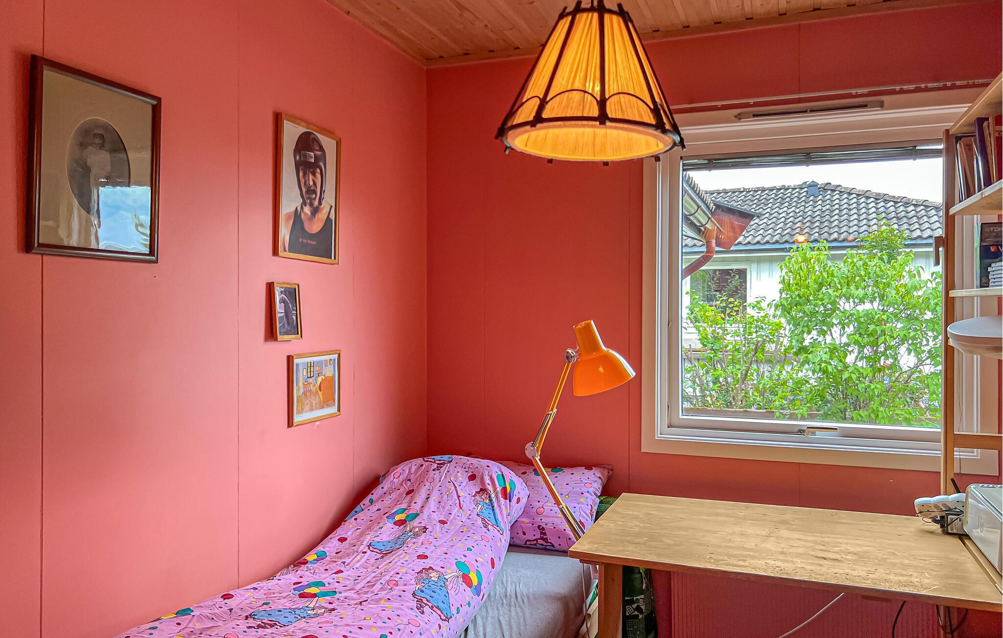 Oplev et afslappende ophold i dette hyggelige feriehus nær søen. Dette hyggelige hus byder jer velkommen med et varmt trælook, farverige lænestole og et praktisk køkken, hvor I kan tilberede lækre måltider. Tilbring afslappende timer her og genoplad batterierne. Uanset om I streamer jeres yndlingsserier eller nyder en spilleaften på sofaen, sætter I selv tempoet for dagen. I varmt vejr kan I nyde en afslappet morgenmad udenfor og lytte til naturens lyde. Hvis I har lyst, kan I fordybe jer i en god bog eller blot se børnene gynge og lege i haven. Om sommeren kan I nyde afslappende dage ved Mjøsa, hvor I kan svømme, sejle og fiske på idylliske steder. Vandr gennem det nærliggende Furuberget, et smukt udflugtsområde med afmærkede stier. Om vinteren lokker de præparerede langrendsløjper, ligesom Presterudbanen-skibakken og Presterudhallen, der ligger en kort gåtur væk og er kendt for både skøjteløb og hockey. Andre særlige højdepunkter inkluderer Domkirkeodden med sin glaskuppel over de middelalderlige kirkeruiner, det moderne kulturcenter og Hamars charmerende havnepromenade. Bemærk venligst: Der er en jernbanelinje lige foran ejendommen, adskilt af et hegn.