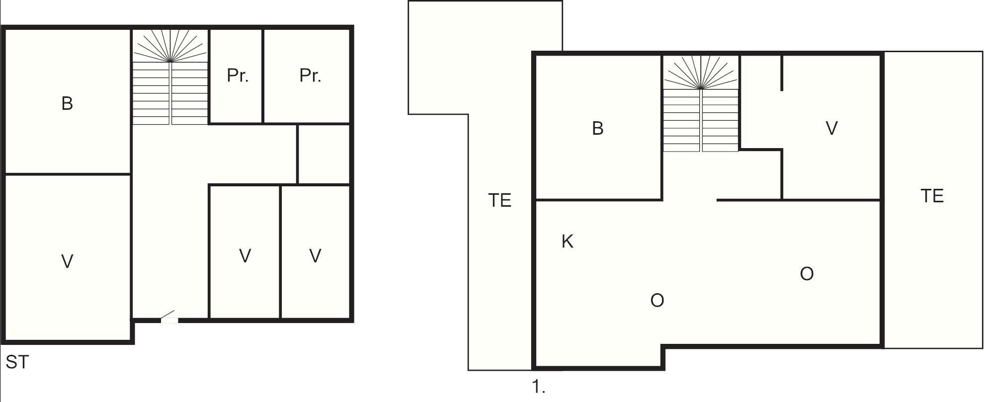 4 Soveværelser: (1DS+2K)+(1S)+(2S)+(1DS)