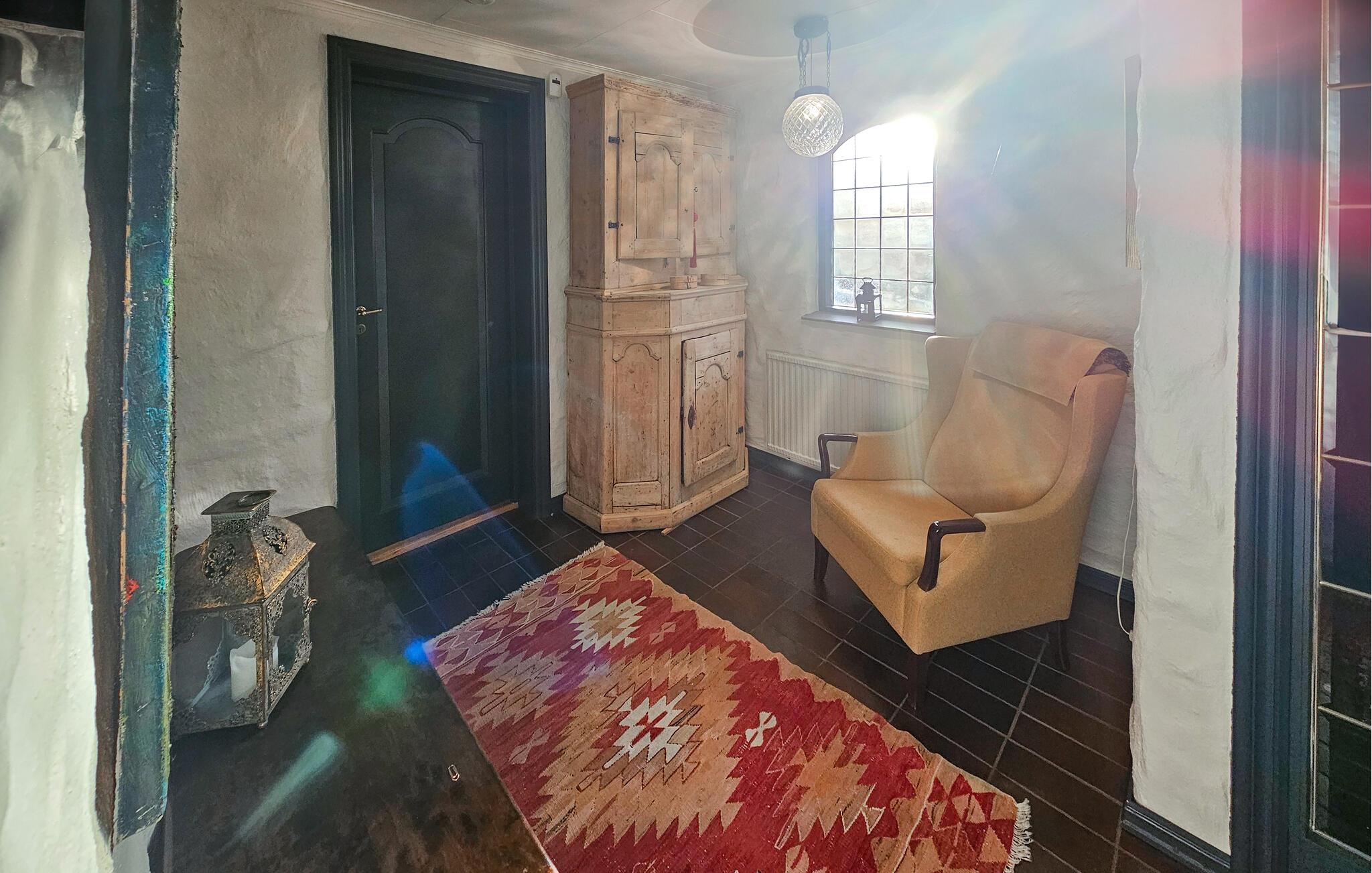 Uanset om det er med familie eller venner - i dette rummelige feriehus kan I forvente komfort, rustik hygge og talrige muligheder for at være aktiv eller bare slappe af. Glæd jer til at lave mad sammen i det indbydende, fuldt udstyrede køkken. Gennemse den velassorterede væg af bøger, nyd hyggelige aftener over et glas vin ved den åbne pejs eller gør jer godt tilpas på de bløde sofaer til en filmaften.