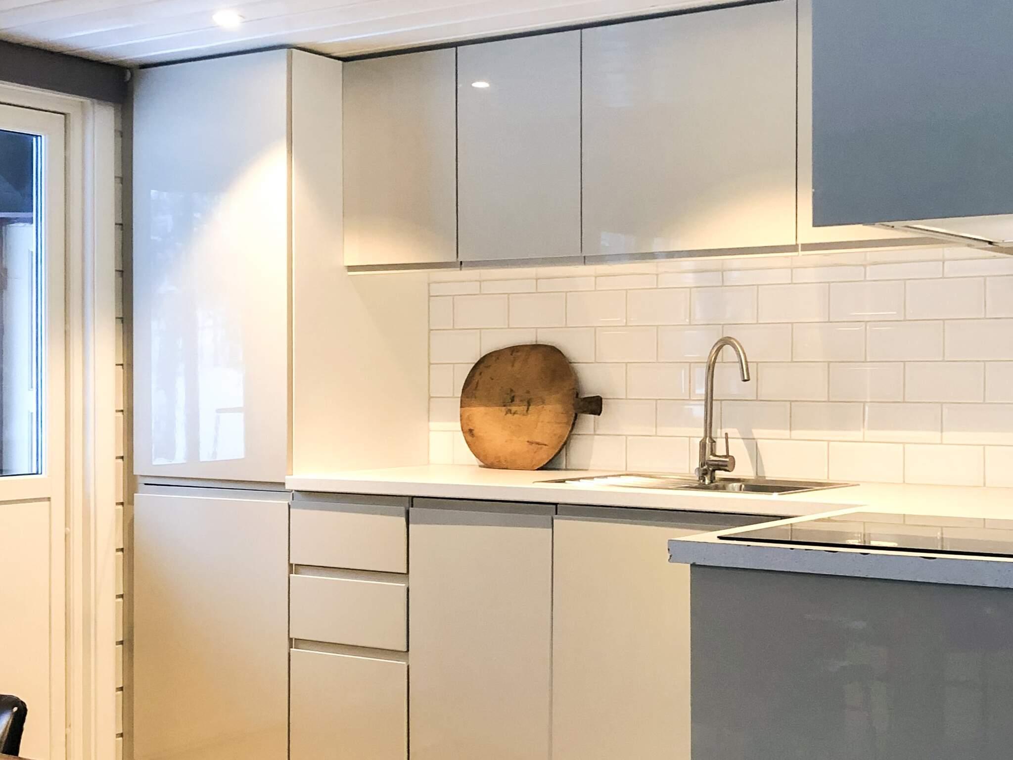 Køkkenafd.: El-komfur, køleskab, fryser 1 - 59 l, mikroovn, emhætte, opvaskemask., kaffetragt