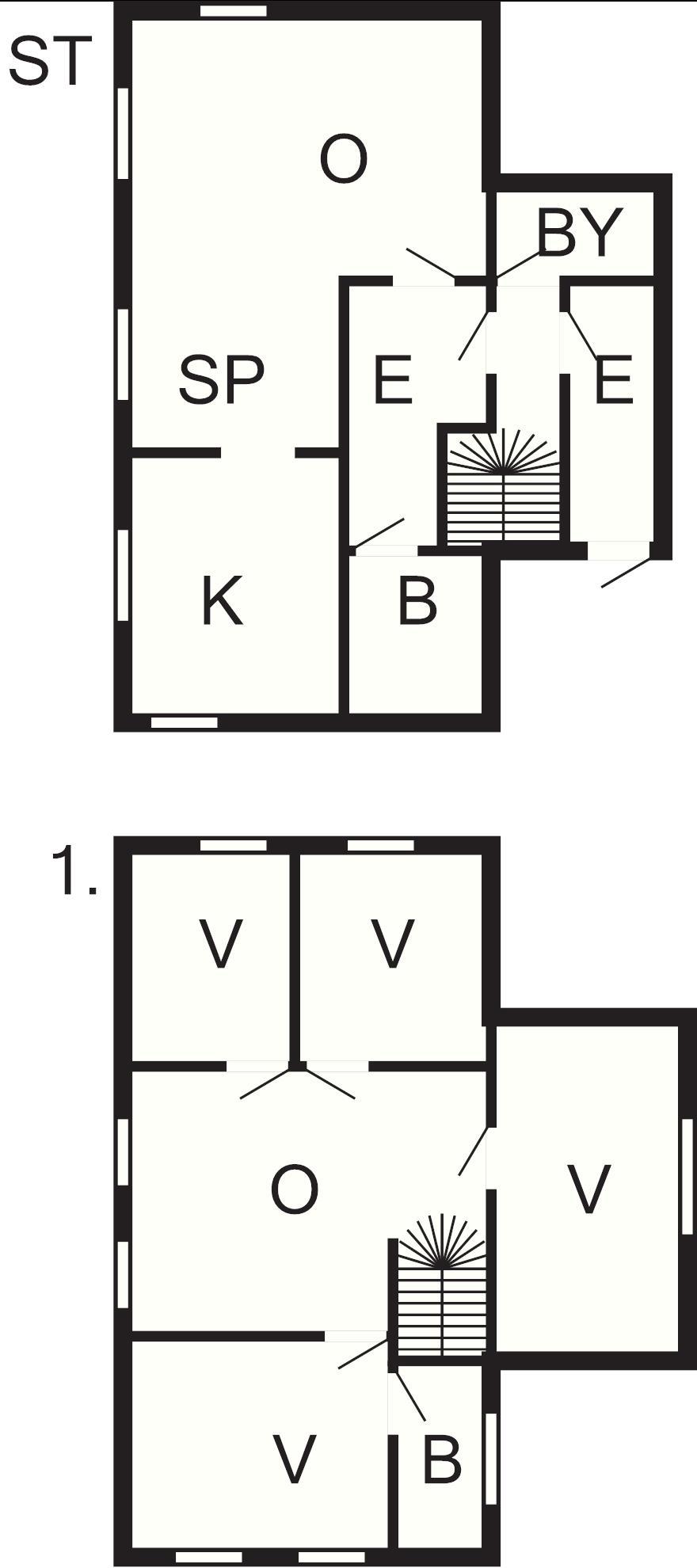 4 Soveværelser: (1DS)+(1DS)+(1DS)+(3S)