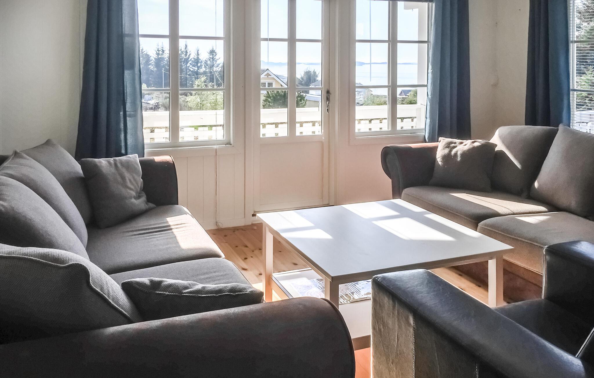 Dette feriehus ligger på den maleriske ø Hitra. Her kigger I ud på et betagende landskab, men huset giver jer ikke kun en spektakulær udsigt over havet, men også muligheden for at opleve Norges uberørte natur tæt på. Den klare luft og den fredelige atmosfære lægger op til at starte dagen afslappet. Nyd en afslappet morgenmad og nyd den vidunderlige udsigt over fjorden, og slap derefter af på de komfortable sofaer eller tag en kop kaffe ud på terrassen.
