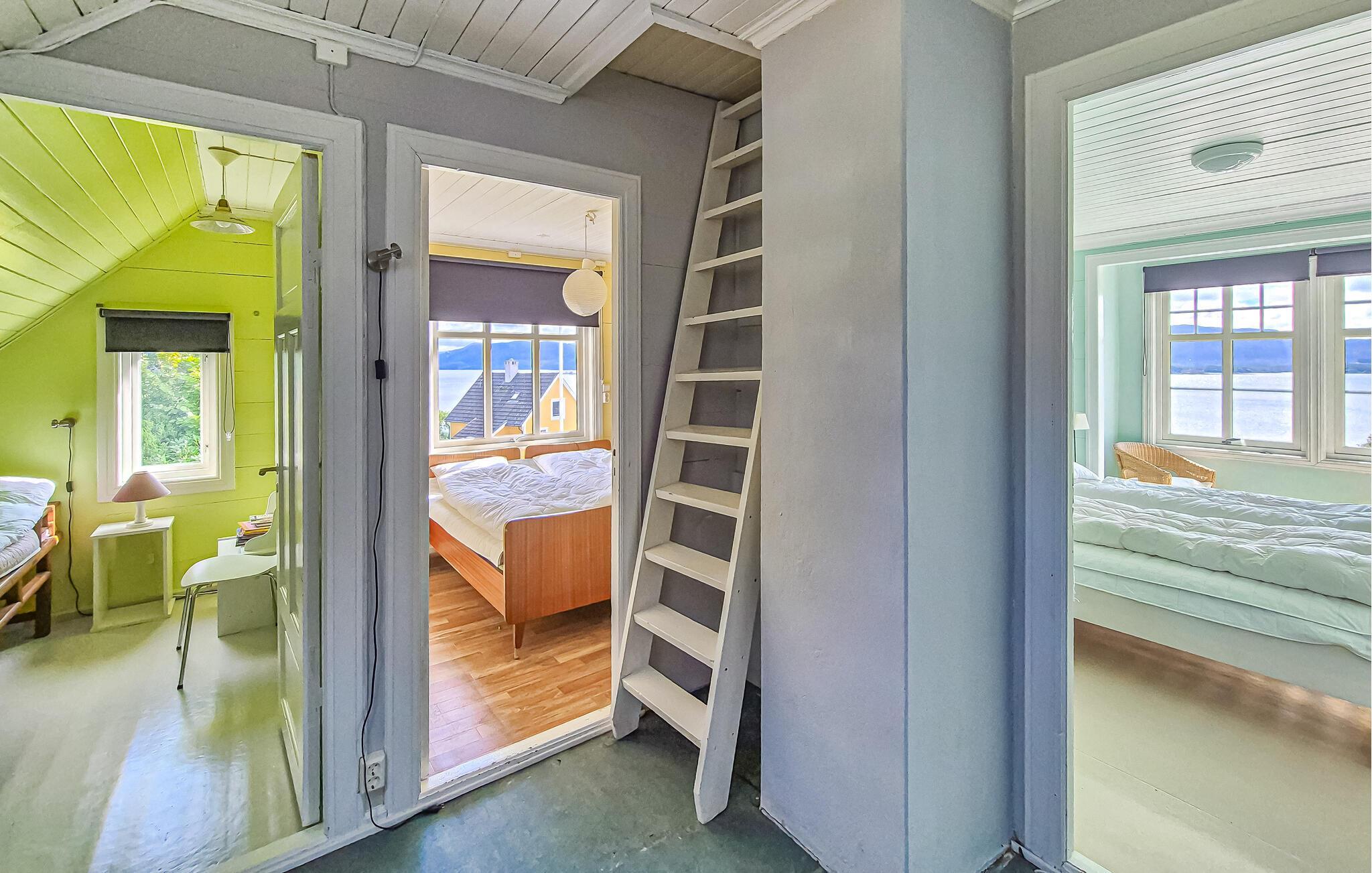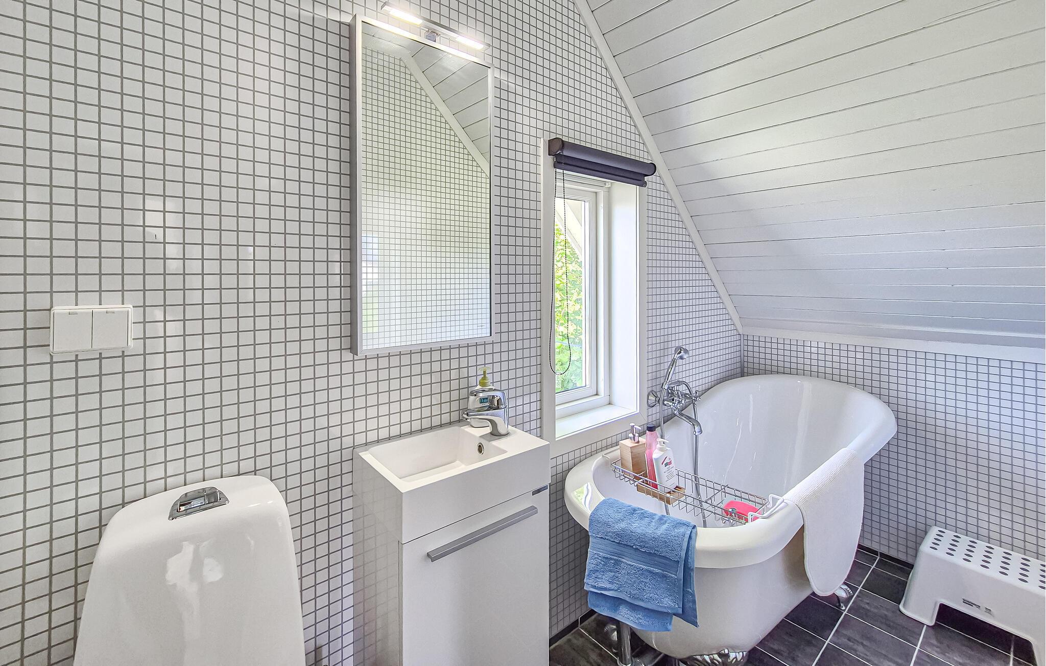 Dette hyggelige og velholdte feriehus har et lyst og flot indrettet interiør og tilbyder masser af plads til afslappende dage med venner eller en stor familie. Nyd harmoniske måltider i den hyggelige spisestue, planlæg jeres aktiviteter sammen, og tænd pejsen efter en lang dag udendørs. Slap af med en bog i den behagelige sofa eller brug tid på familien under en sjov spilleaften.
