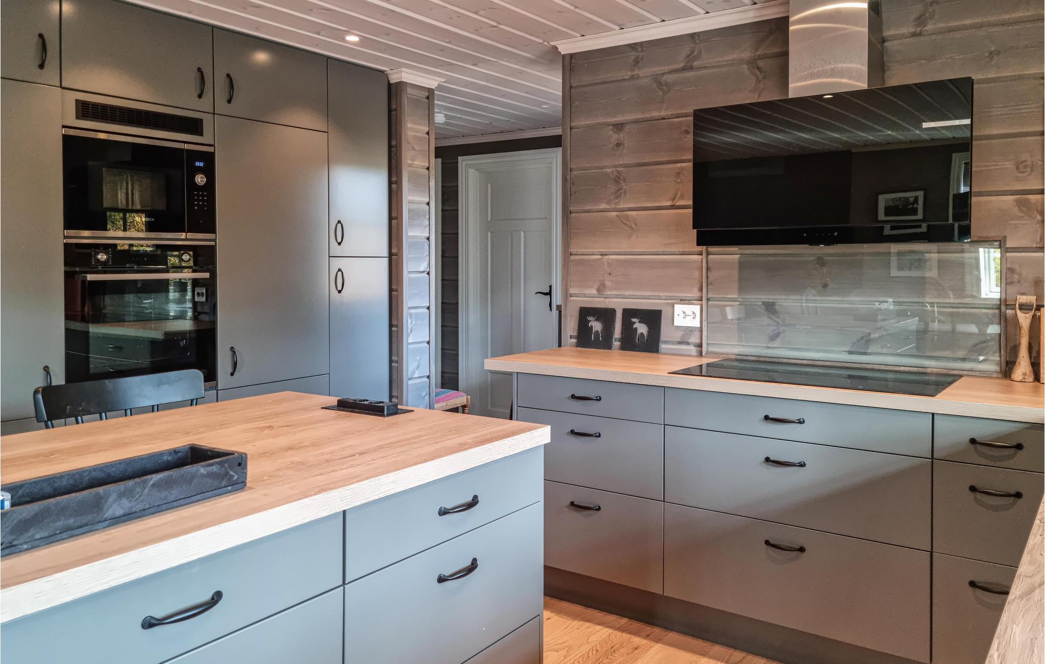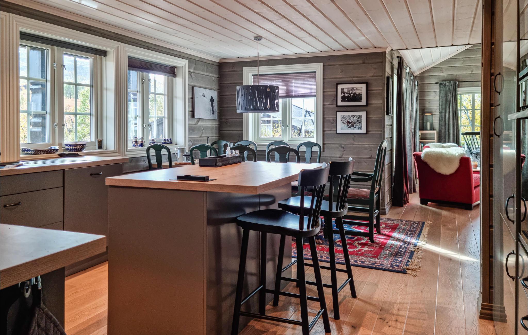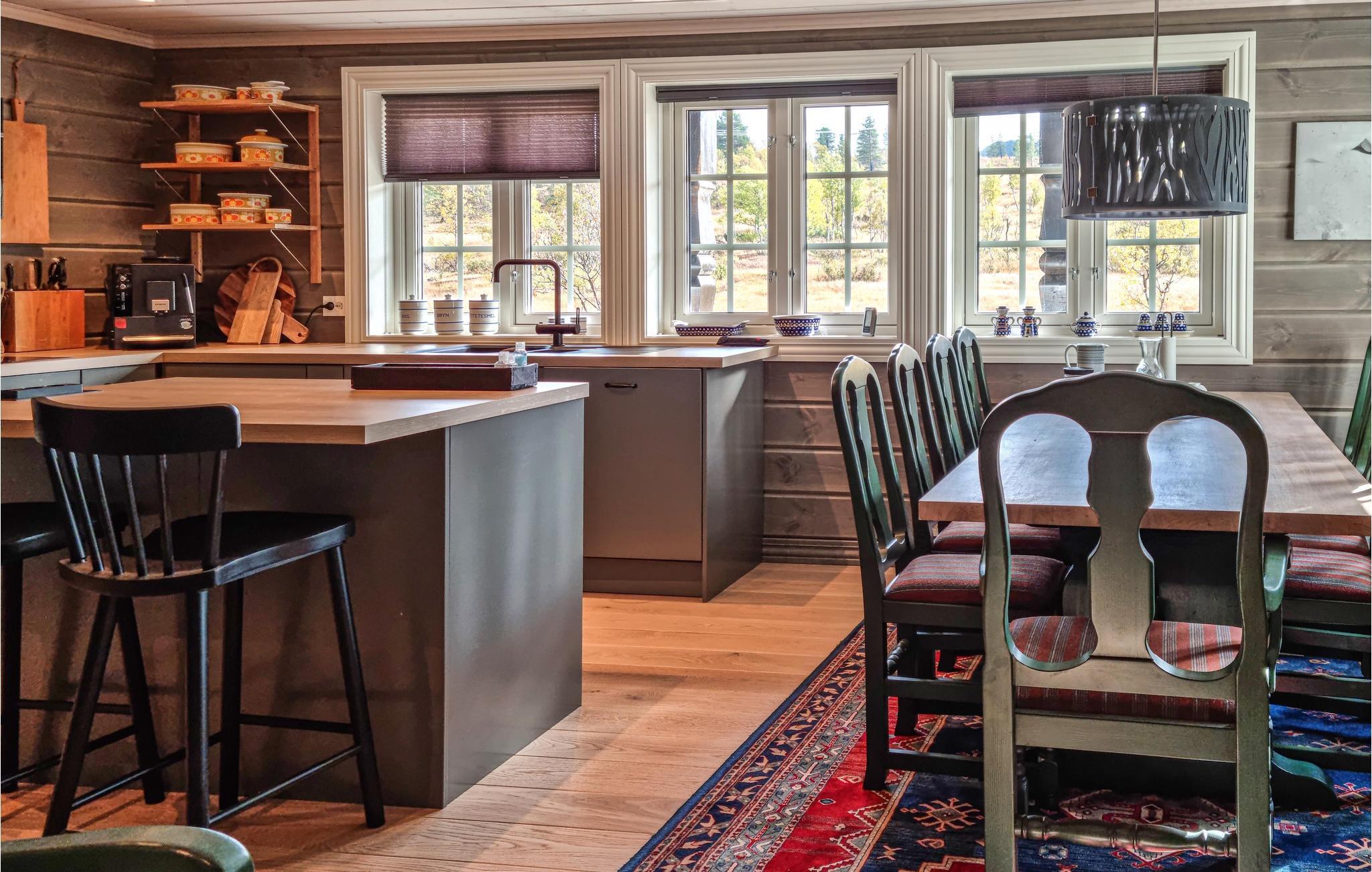 Glæd jer til en skøn ferie i dette herlige hus, som har plads til to-tre familier eller en gruppe venner på tur. Stilen er flot og autentisk med mørke træfarver, mens faciliteter er topmoderne. Efter jeres lange gåture i området kan I varme jer foran brændeovnen, og om sommeren får I en fantastisk ramme om måltiderne på den hyggelige terrasse.