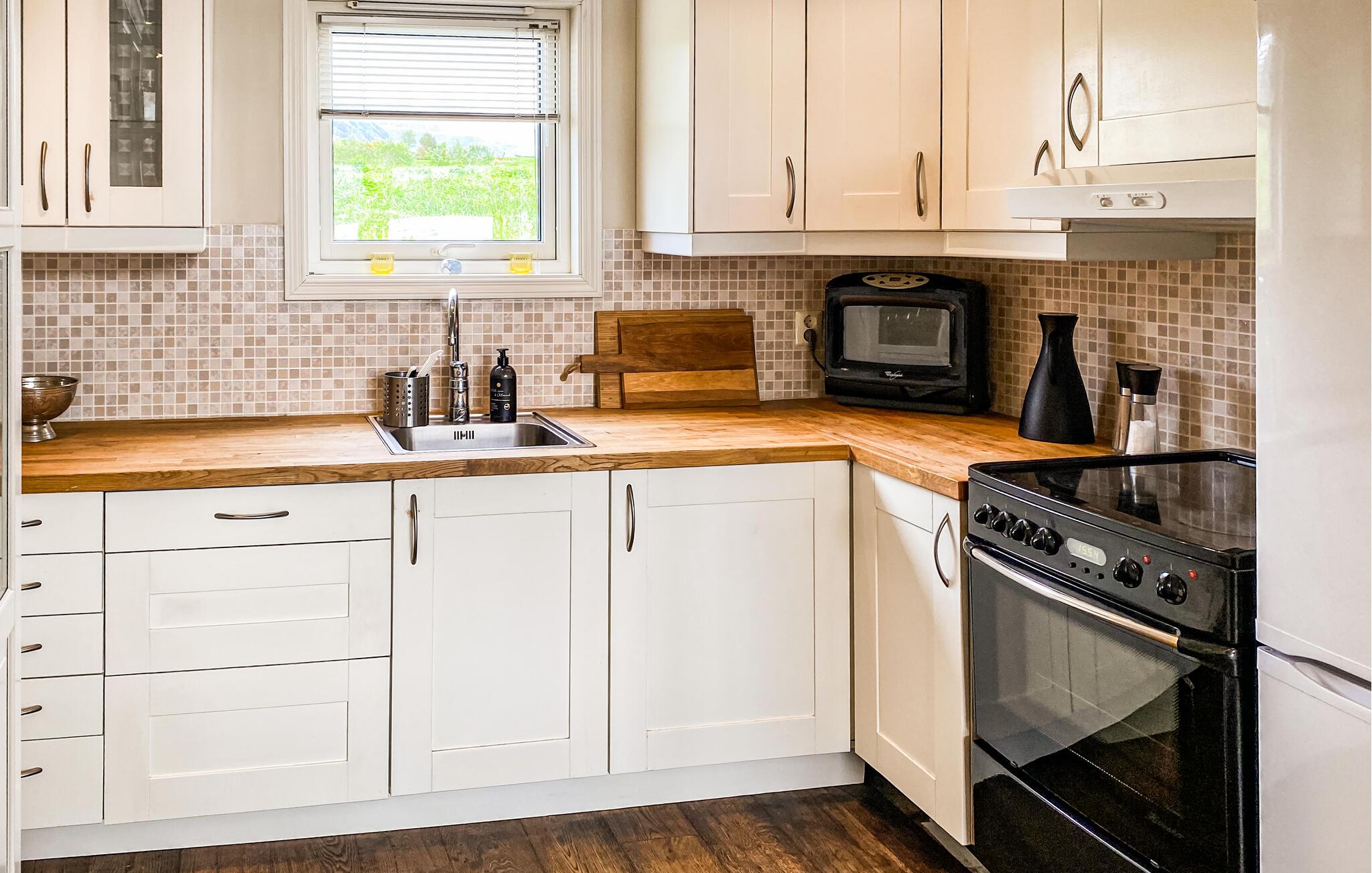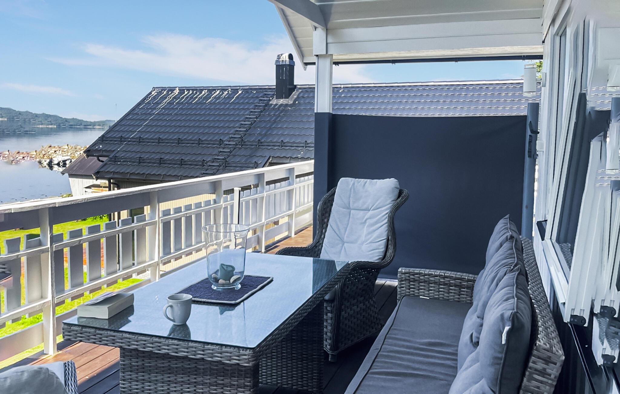 I solskinsvejr kan I sidde på den rummelige terrasse og starte dagen med en lækker morgenmad, mens I nyder den fantastiske udsigt over fjorden og de omkringliggende bjerge. Afslut dagen med en hyggelig grillfest, og hvis I er heldige, kan I måske endda få øje på det fascinerende nordlys på den kulsorte himmel.
