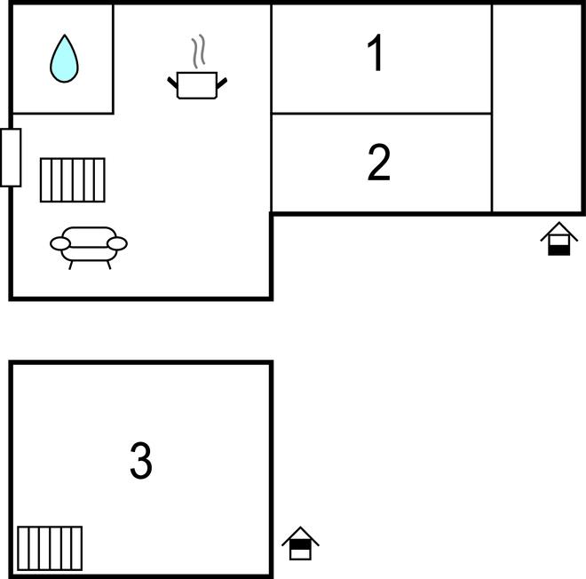 Soveværelse (nr. 3) - 2 Sovepladser. (Enkeltseng(e)).