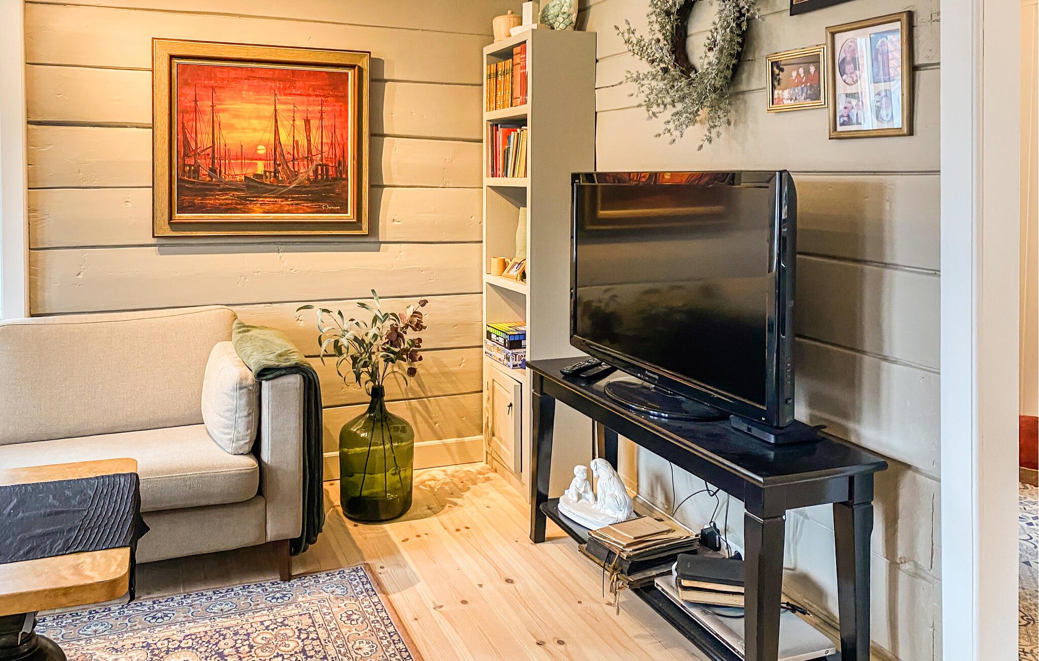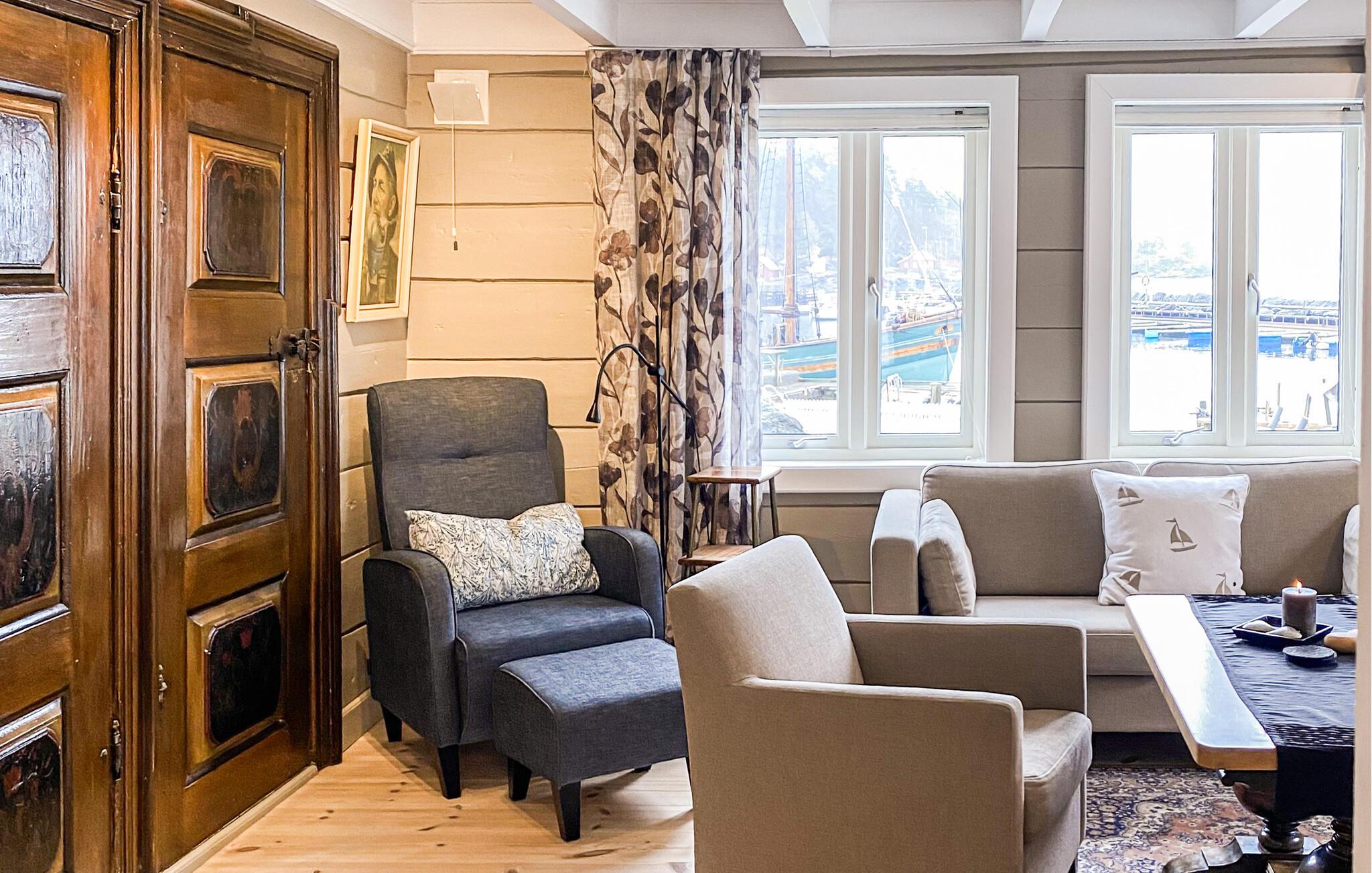 Dette maleriske hus ved vandet tilbyder de perfekte rammer for en afslappende pause fra hverdagen. Et komfortabelt siddeområde, en brændeovn og historiske detaljer skaber en atmosfære, hvor I hurtigt kan slappe af og lade op. Tilbring hyggelige timer med at snakke og lytte til musik eller tilbered lækre måltider i det moderne køkken.