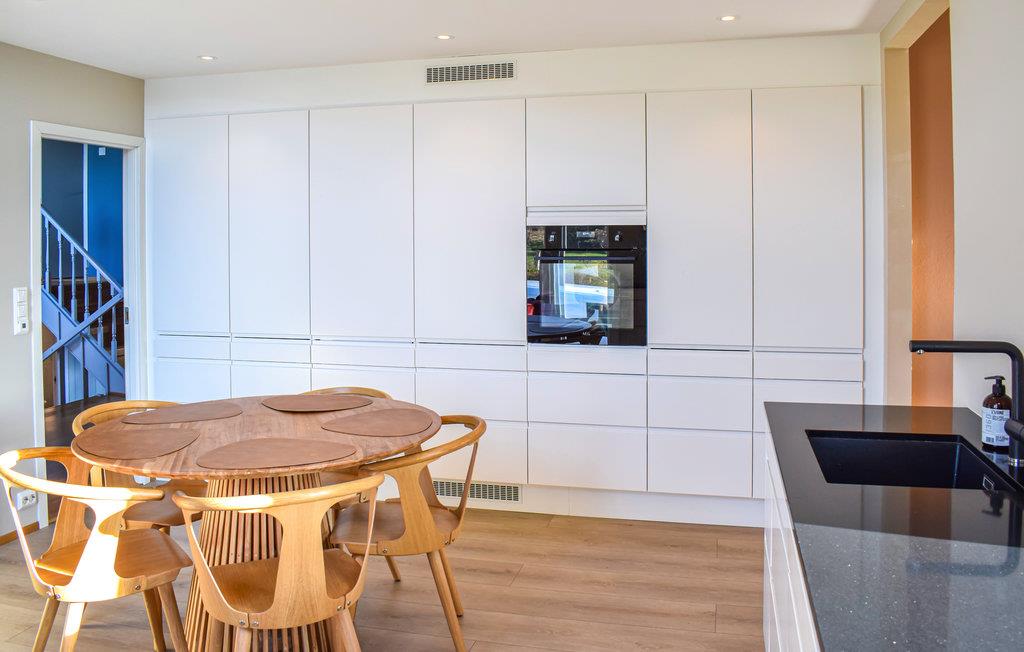Trænger I til en ferie i lystfiskerens paradis, Karmøy, i den sydnorske skærgård? Bo i dette elegant indrettede feriehus lige ved fjorden og i kort afstand fra bådhavnen. Dette hus er perfekt til en stor familie, der elsker at fiske. Inde i huset er der masser af luft og plads. De stilrene møbler, det høje loft, de varme farver, træelementerne, vinduerne fra gulv til loft og de fire hyggelige sofaområder at forelske sig i skaber en særlig atmosfære. Om aftenen kan I spille Uno og brætspil ved kisten i det farverige sofaområde og sludre om de mange fiskearter ved det lange spisebord. Grill dagens friskfangede fisk på den åbne terrasse. Tilbring glade timer ved fjorden med at bade og kaste jeres fiskeline i vandet.