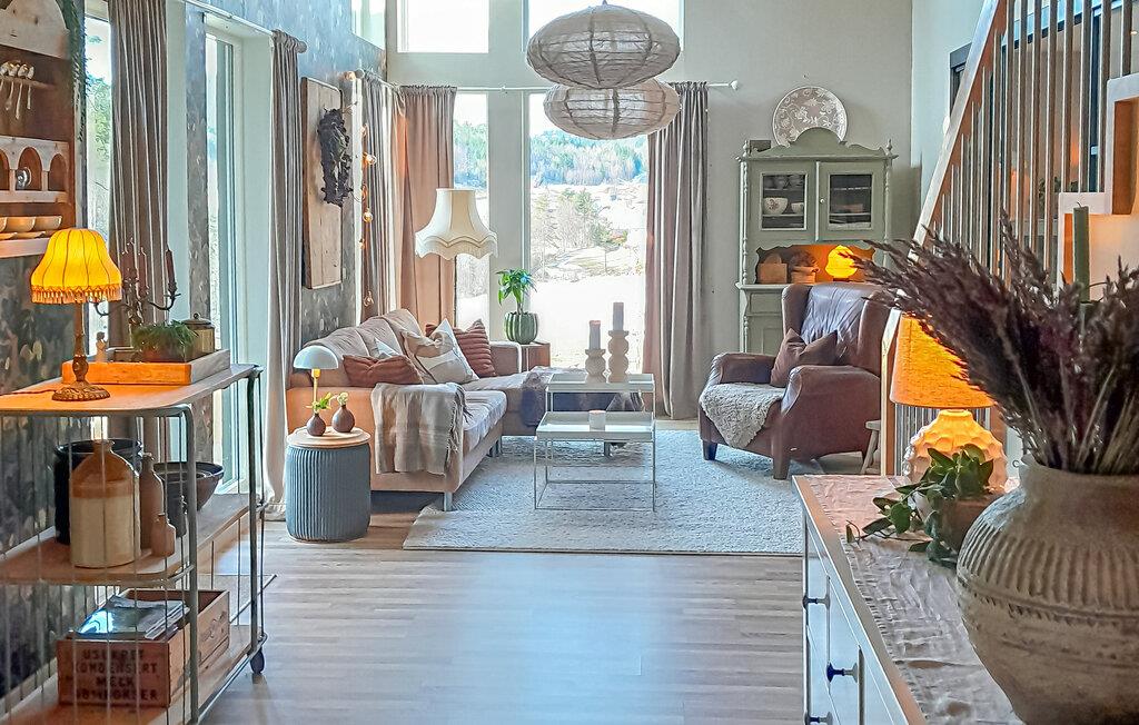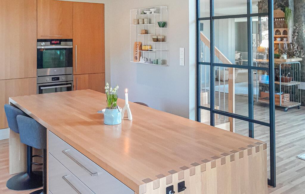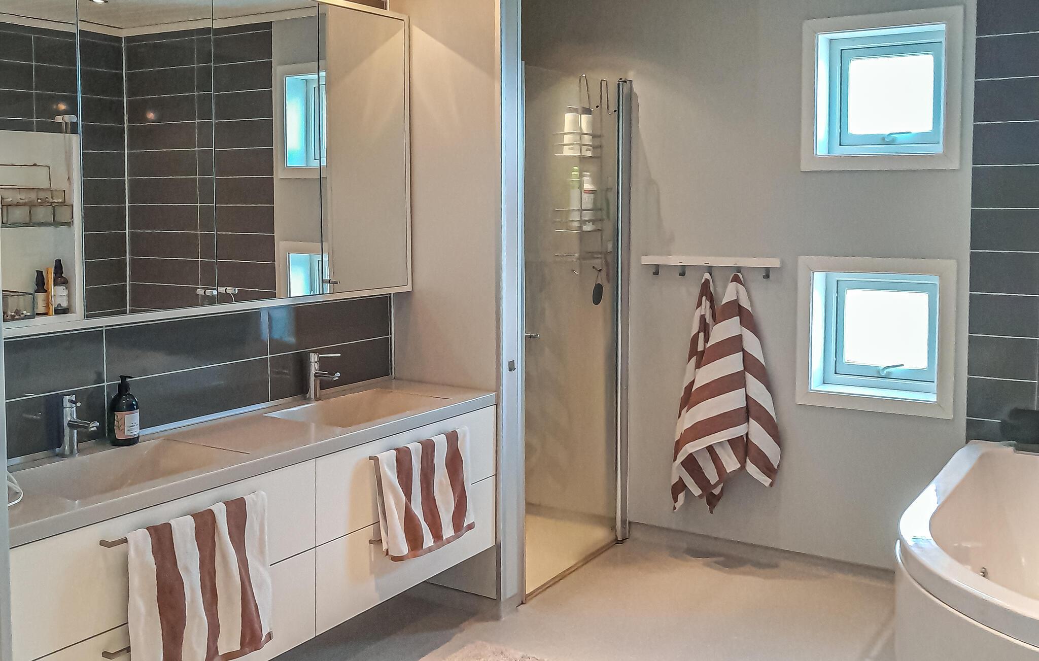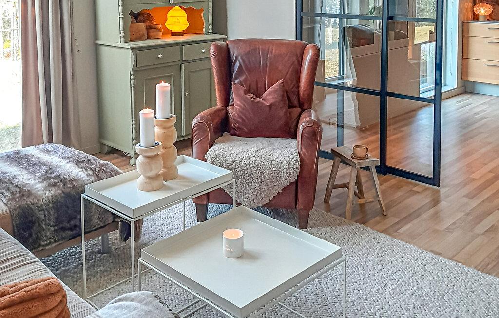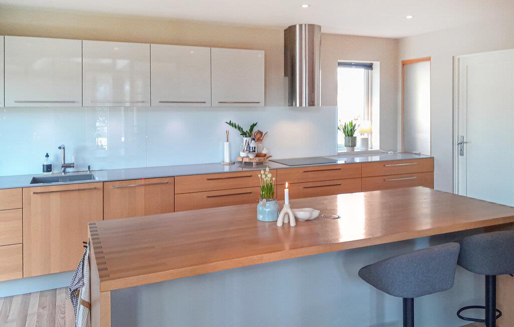 Glæd dig til et moderne, lysgennemstrømmet feriehus med et stilfuldt design og masser af komfort. Store vinduer, åbne rum og materialer af høj kvalitet skaber en rolig og elegant atmosfære. Den rummelige opholdsstue med hyggelige siddepladser og pejs samt det moderne køkken indbyder til afslapning og fælles måltider.
