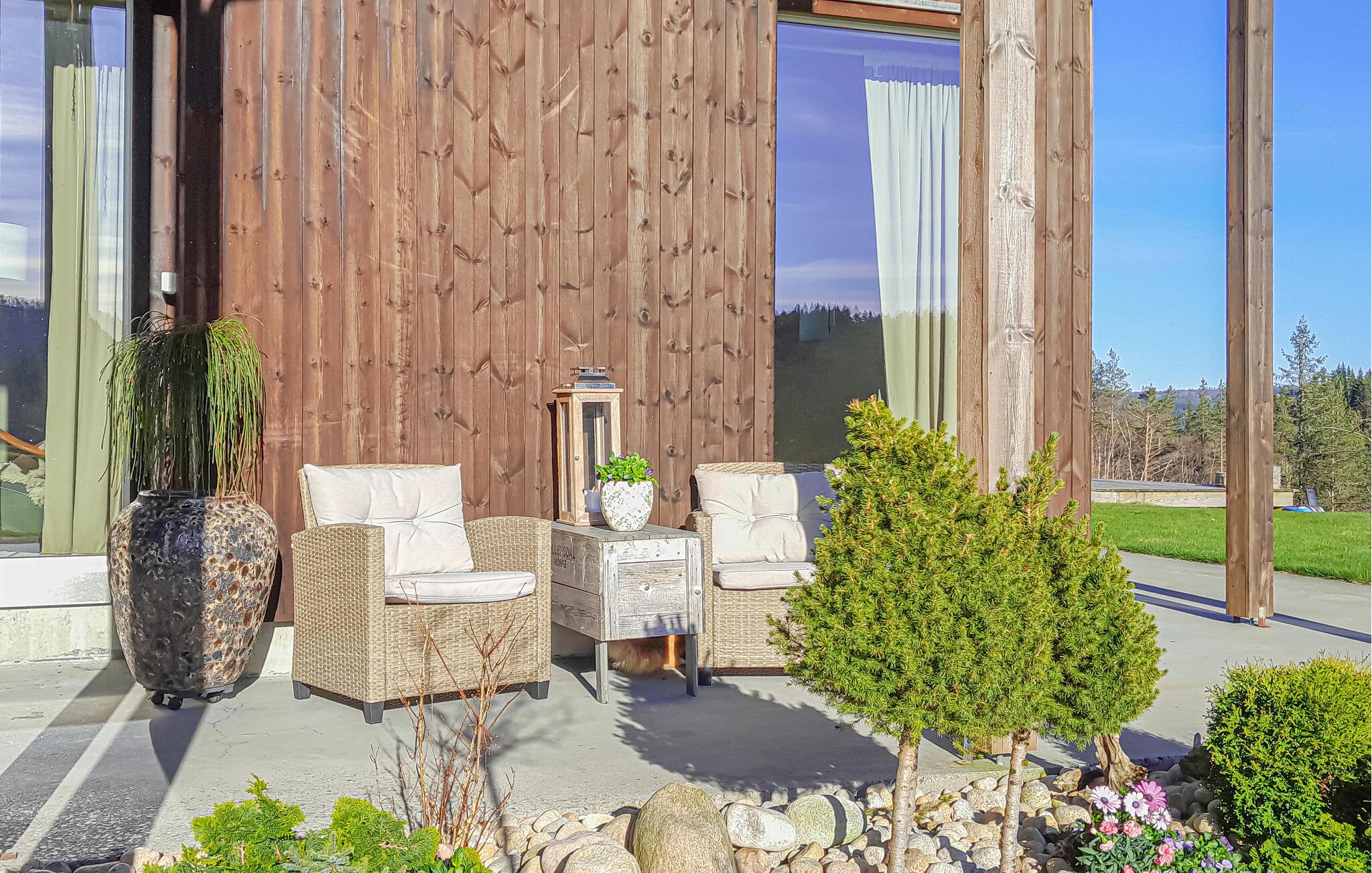 Udenfor venter en kærligt designet have med flere terrasser, hyggelige siddepladser og et grillområde. Slap af i det fri og nyd den storslåede natur.