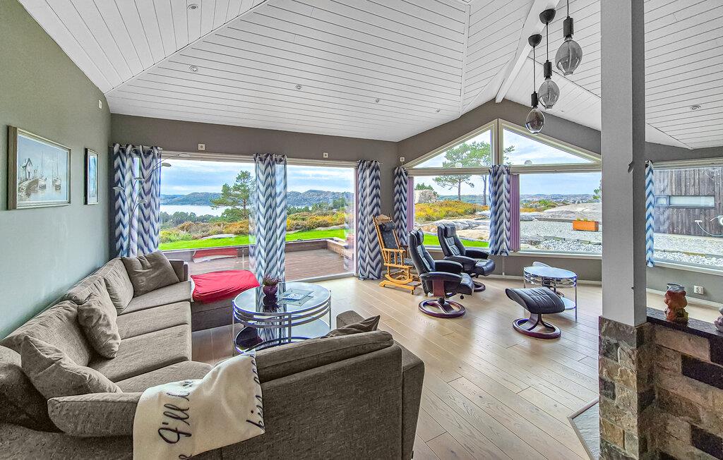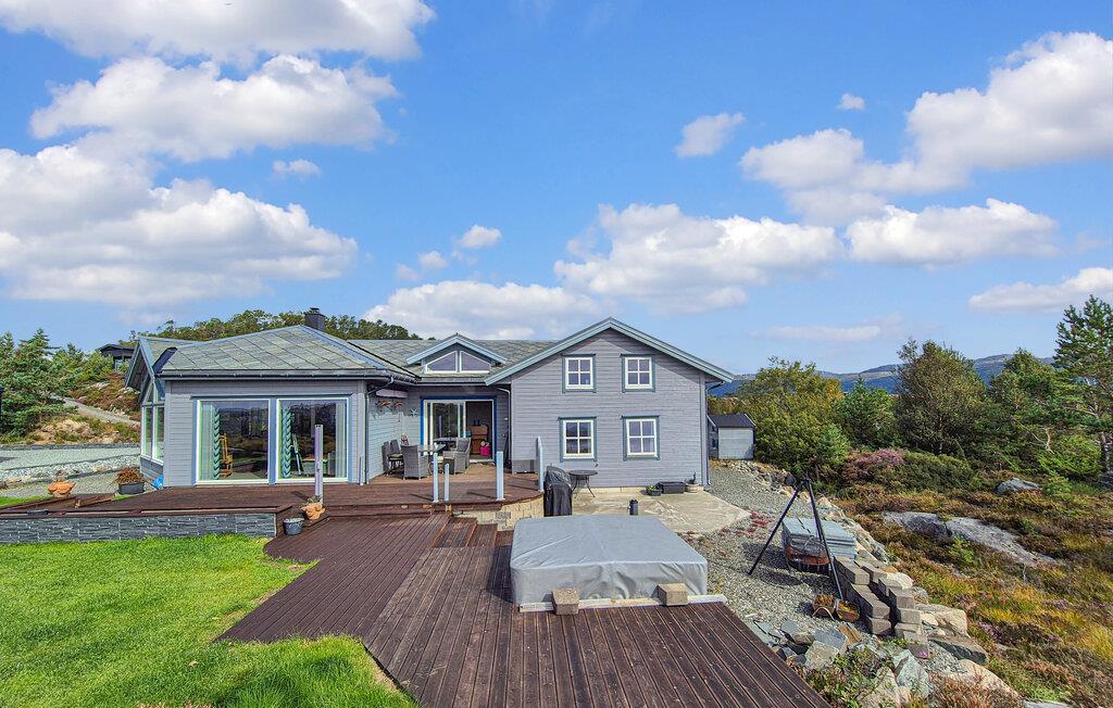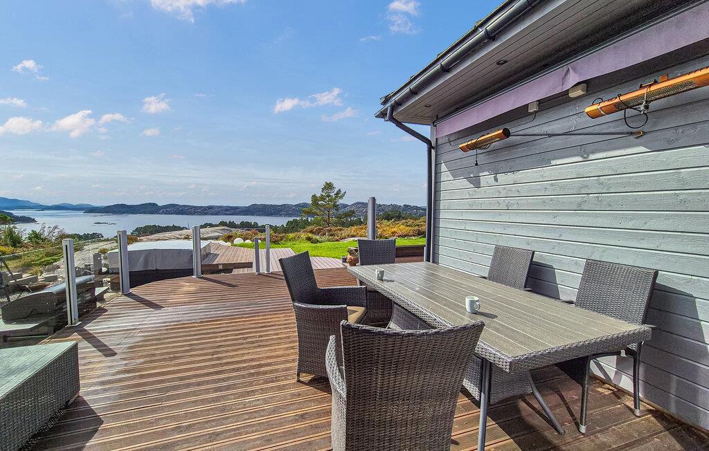 På jeres store terrasse kan I nyde den sensationelle panoramaudsigt, mens I slapper af i spabadet. Server lækre grillretter eller kig på stjernerne i de stemningsfulde timer ved bålstedet.