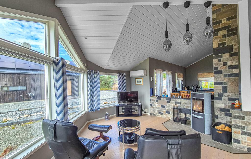 Dette rummelige og komfortabelt møblerede feriehus tilbyder masser af plads til en afslappende ferie med den udvidede familie eller en gruppe venner. Store vinduer giver udsigt over de maleriske omgivelser og masser af naturligt lys. Lav mad sammen, planlæg jeres aktiviteter over hyggelige måltider og nyd pejsen. Hold spilleaftener eller stream en spændende film.