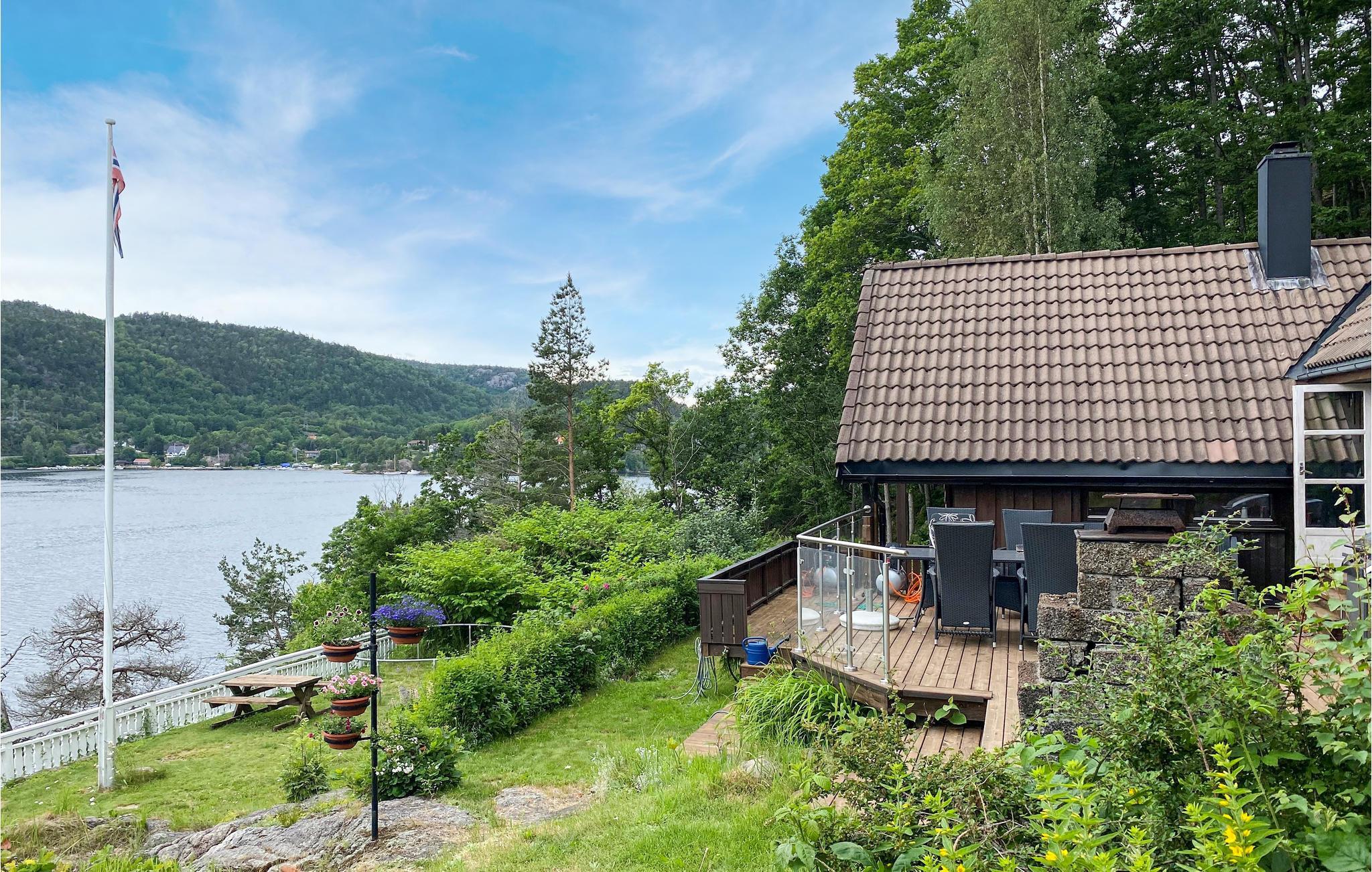 Sommerhuset er smukt beliggende på en afsondret grund nær vandet. Her kan I tilbringe dagene med leg og vandaktiviteter eller bare læne jer tilbage og beundre panoramaudsigten over fjorden.