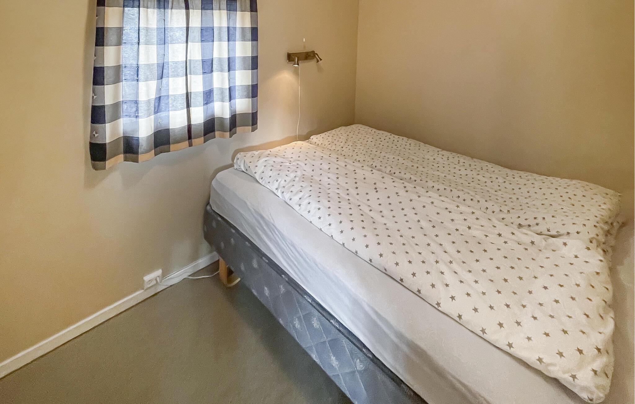 Dette hyggelige feriehus er ideelt til en lille familie og byder på alt, hvad I skal bruge til en afslappende ferie. De store vinduespartier lukker masser af naturligt lys ind og skaber en lys og venlig atmosfære. Nyd måltider sammen ved det lange spisebord eller slap af på terrassen, mens børnene leger i haven.