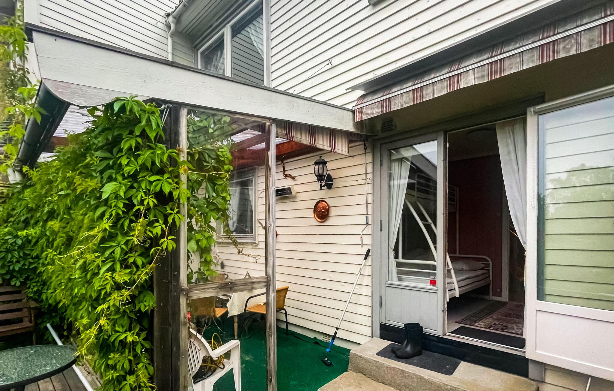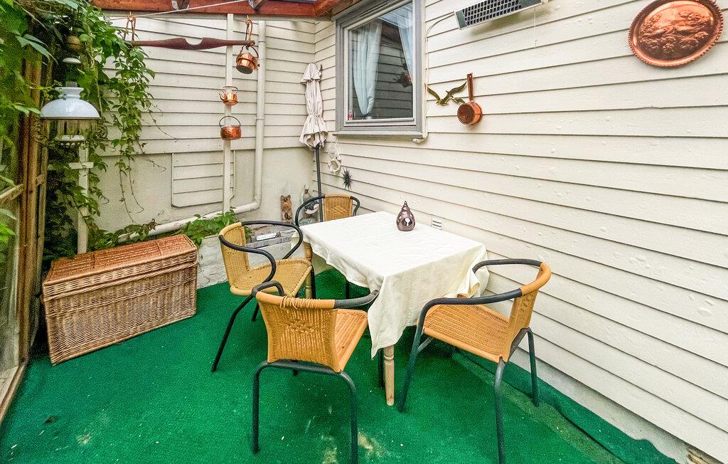 Når vejret er godt, kan I sidde på terrassen, der er indrettet med kærlige detaljer, med en kop kaffe eller et måltid. Slap af her eller planlæg aktiviteterne til jeres næste ferie.
