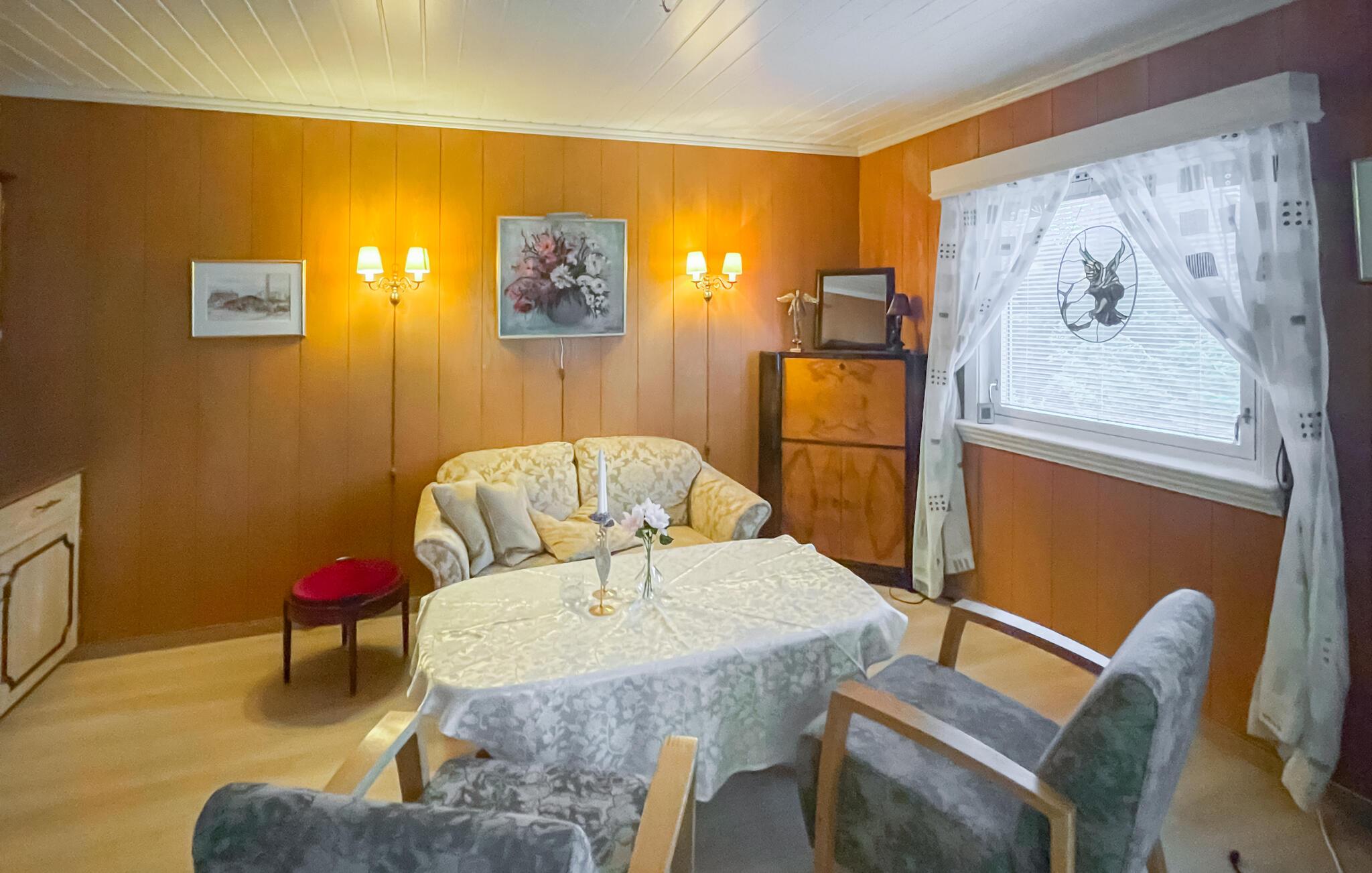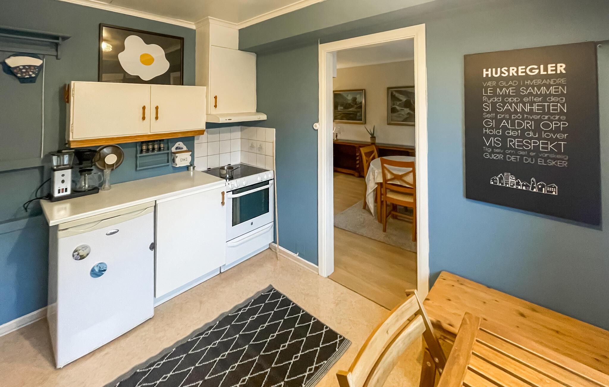 Dette hyggelige hus har alt, hvad I skal bruge til et problemfrit ophold. En hyggelig stue med komfortable sofaer og et funktionelt køkken skaber en afslappet atmosfære, hvor I hurtigt kan slappe af. Uanset om I lytter til musik, snakker eller laver mad sammen – her sætter I tempoet for dagen.