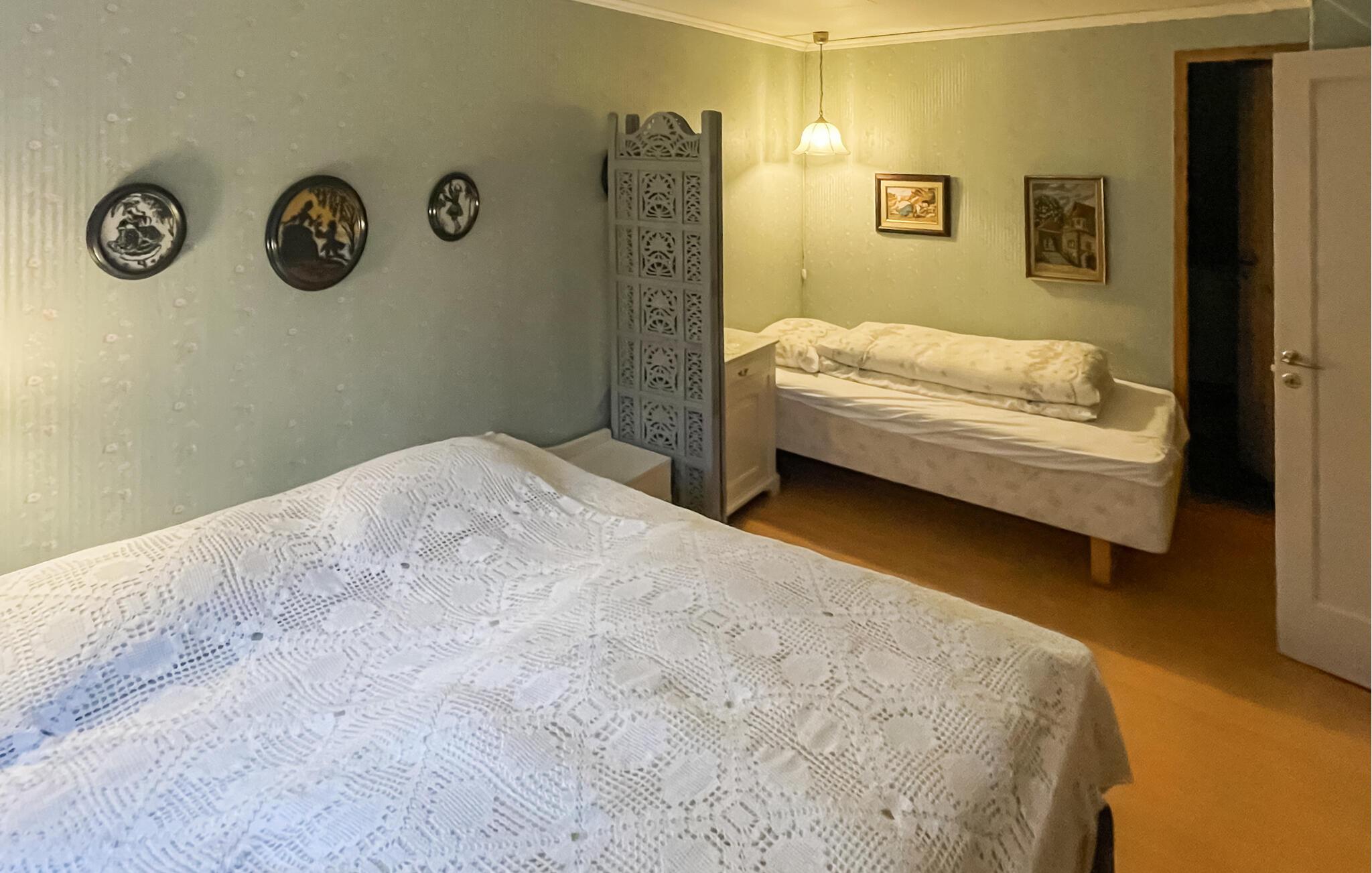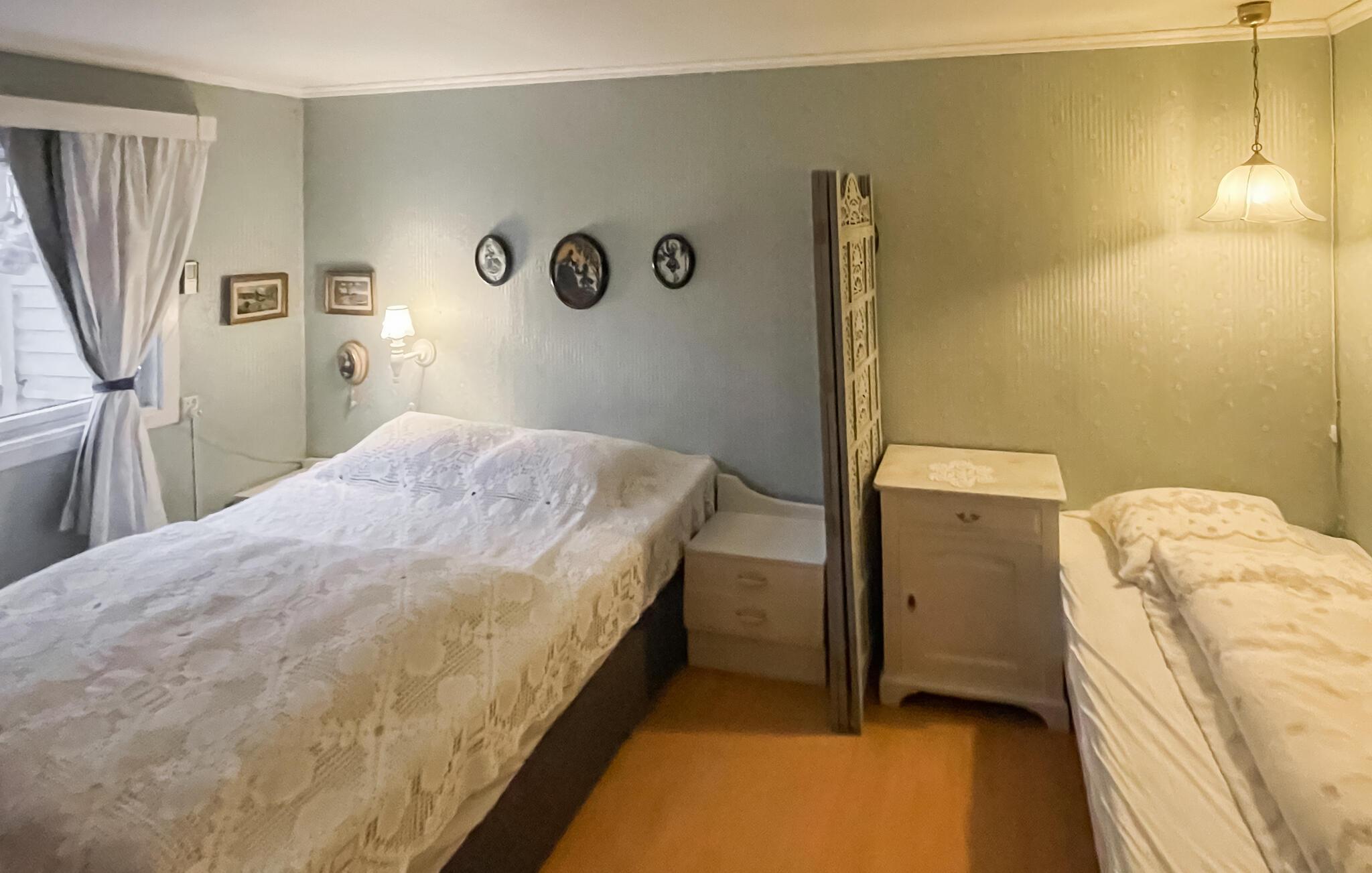 Soveværelse (nr. 1) - 1 Soveplads. (Enkeltseng(e)). 2 Sovepladser. (Dobbeltseng(e)).