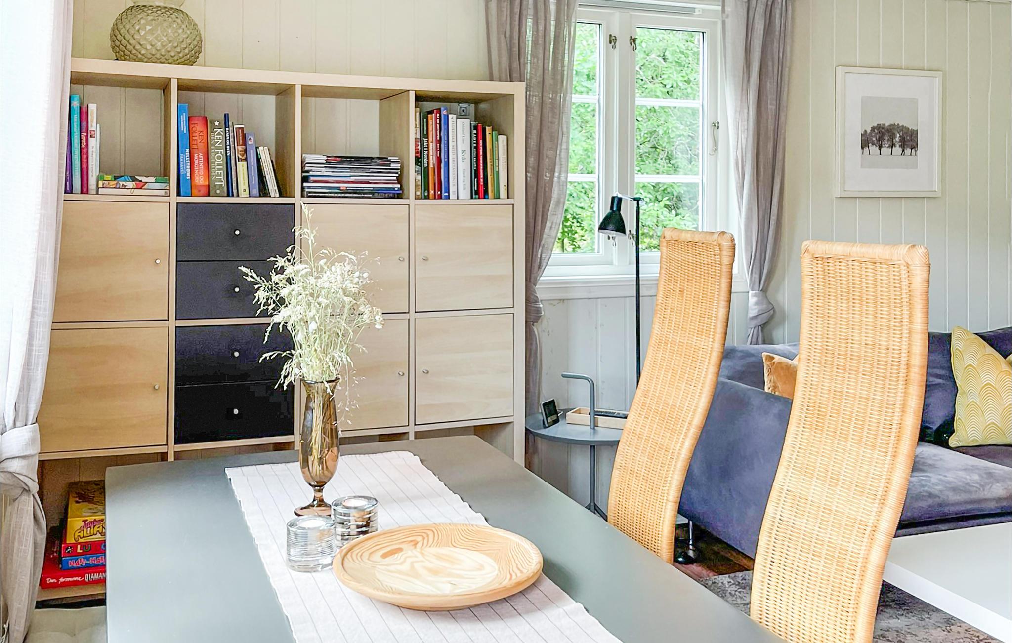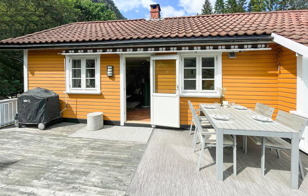Hyggeligt, idyllisk feriehus beliggende næsten lige ud til Lygnaelva og Kvåsfossen – en af ??de bedste lakseelve i det sydlige Norge. Laksesæsonen er fra 1. juni til 31. august. Huset er møbleret med lækre indretningsløsninger. En stor grund i en afsides beliggenhed og en dejlig stor terrasse sikrer en dejlig fredfyldt ferie. Kun 15 km fra Lyngdal, med smukke badesteder og bådudlejning, er blot nogle af højdepunkterne. Dagsture til Lindesnes med Norges ældste fyr, den maleriske landsby Korshavn og den "hollandske by" Flekkefjord er mulige. Lista er et særligt populært sted blandt arkæologer, ornitologer og botanikere. Feriehuset har en privat brønd.