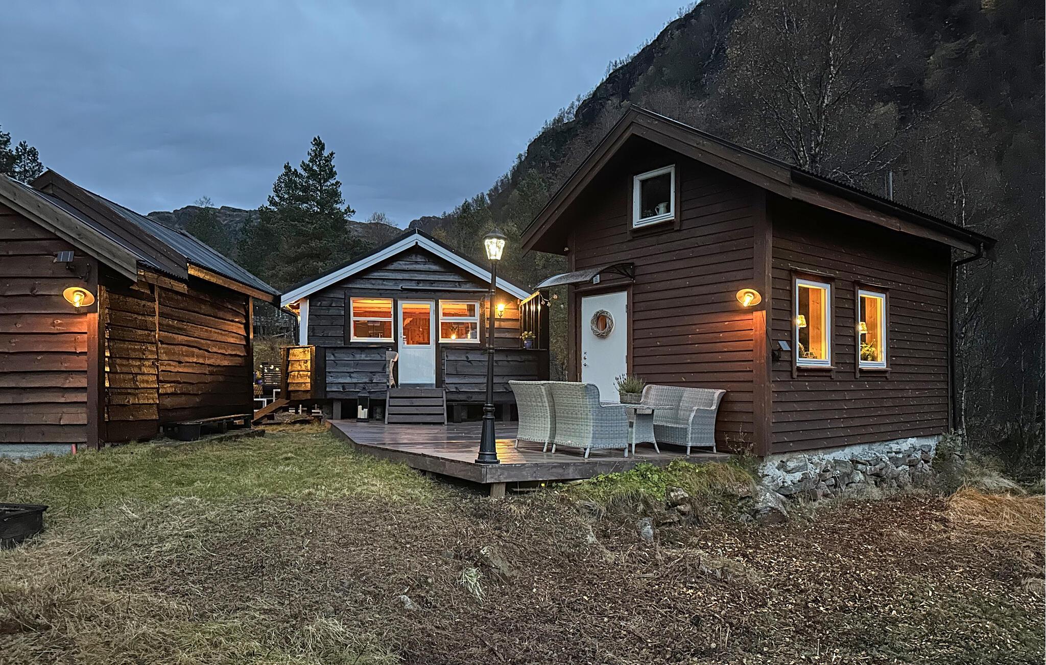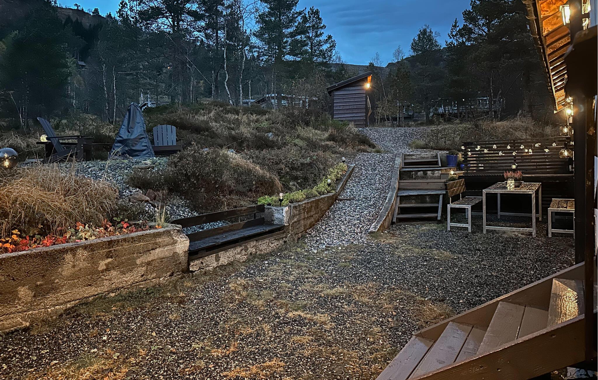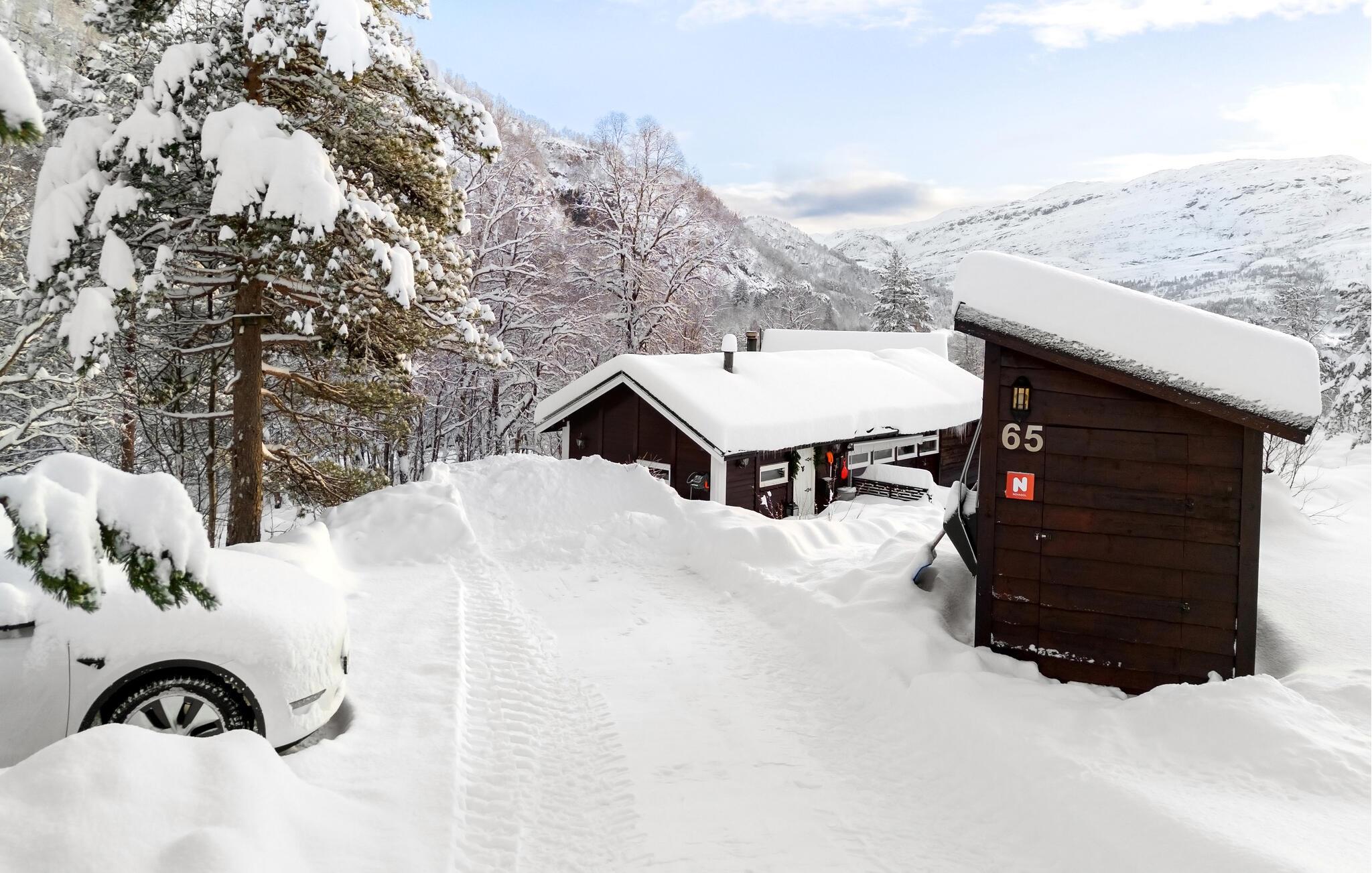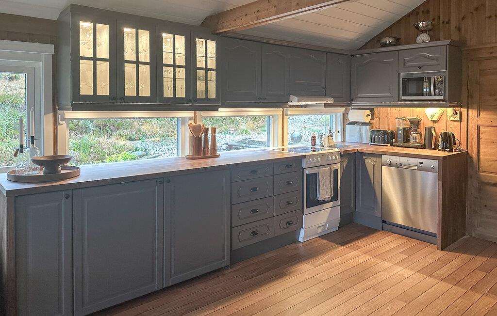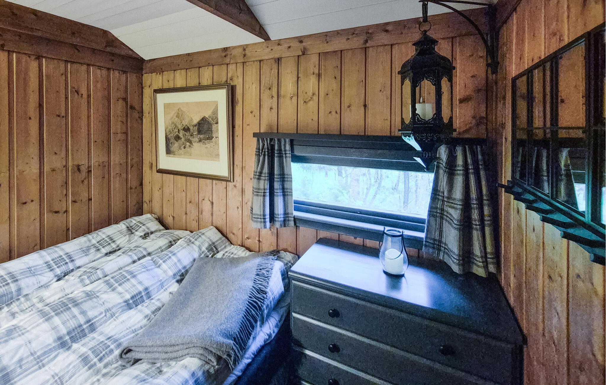 Nyd en afslappende ferie i dette hyggelige feriehus på Kvamskogen. jeres hus ligger stille og ugeneret midt i smuk natur. Det rummelige udendørsområde med terrasser, havemøbler og grill lægger op til at tilbringe afslappende timer udendørs. Lad hverdagen bag jer og gør jer godt tilpas på terrassen, mens I nyder den friske luft og de idylliske omgivelser. Feriehuset byder også på et charmerende anneks med ekstra sovepladser og en lounge, ideel til større grupper eller familier, der har brug for lidt mere plads. Udforsk de forskellige vandrestier i området, som starter lige uden for jeres dør, og oplev norsk natur tæt på. Hvis I kan lide at fiske, er der floder og ferskvandssøer i nærheden, som tilbyder rigelige muligheder for en vellykket fangst. Planlæg også ture til de omkringliggende steder. Besøg Bjørkheim for en kort tur eller tag en tur til Norheimsund og Øystese ved Hardangerfjorden. Bliv fortryllet af de imponerende fjordlandskaber og tag en dagstur til byen Bergen for at nyde kulturelle højdepunkter og byoplevelser. Om vinteren kan I drage fordel af nærheden til Eikedalen skicenter, som byder på skilifter og velpræparerede langrendsløjper på Kvamskogen.