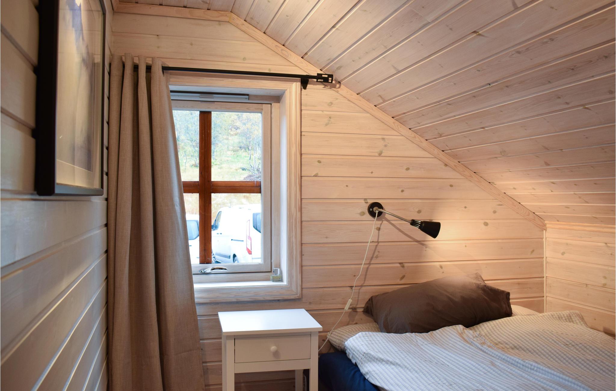 Hyggeligt træhus tæt ved Fossdalsvatnet med smuk udsigt til et flot landskab.