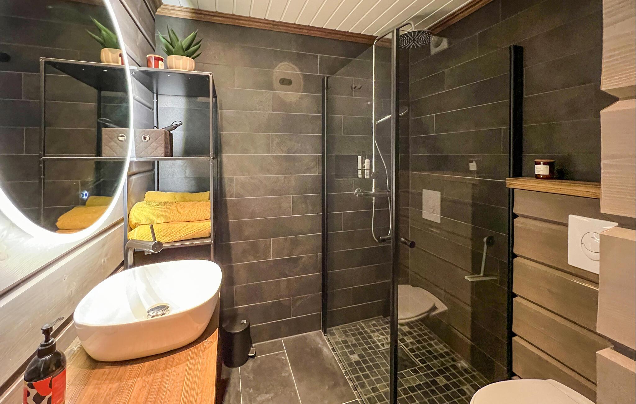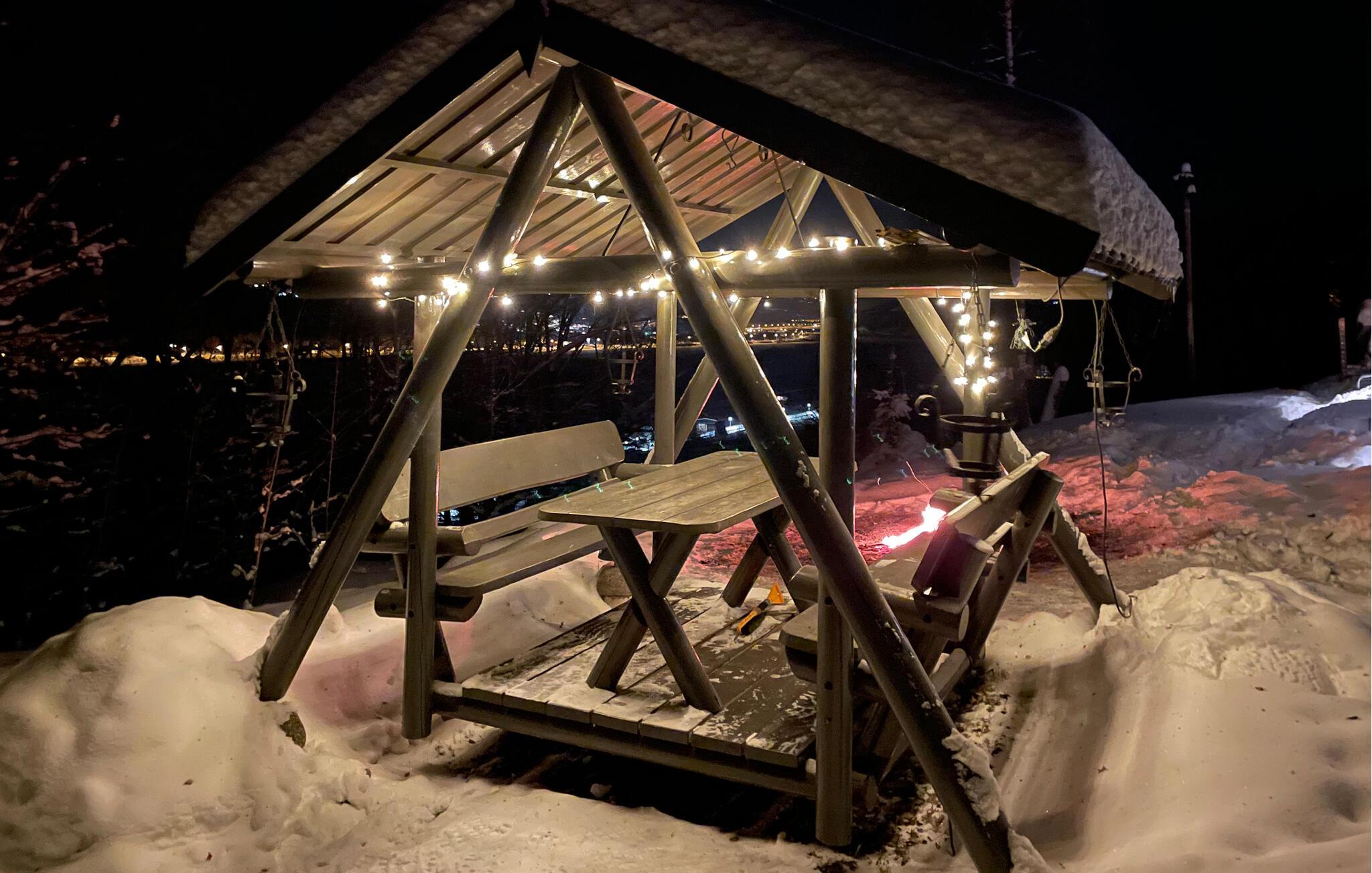 Udenfor kan I forkæle jer selv i den brændefyrede udendørs sauna, som er det bedst sted at hvile stængerne efter en dag i bjergene.