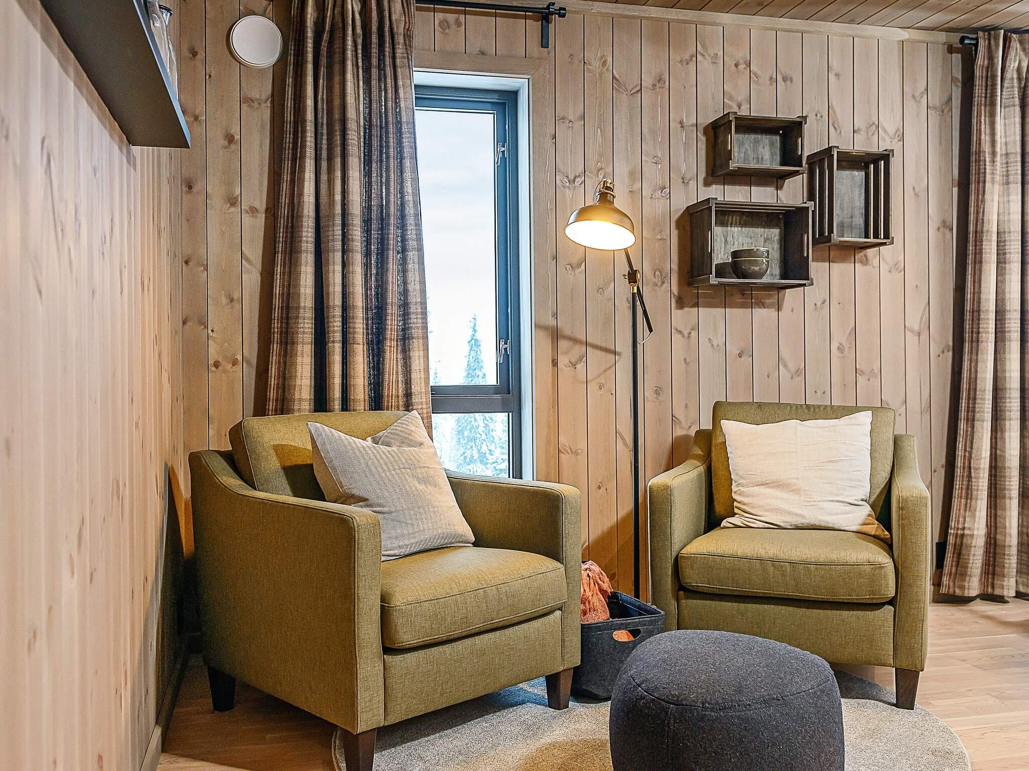 Etter en aktiv dag i naturen, som bokstavelig talt ligger rett utenfor døren, kan du slappe av i saunaen eller nyte varmen fra peisovnen i stuen. Her kan du lene deg tilbake i sofaen og nyte den fantastiske utsikten fra de mange panoramavinduene i oppholdsstuen. Du kan også bare koble av foran TV’en hvis du er mettet etter dagens naturopplevelser.