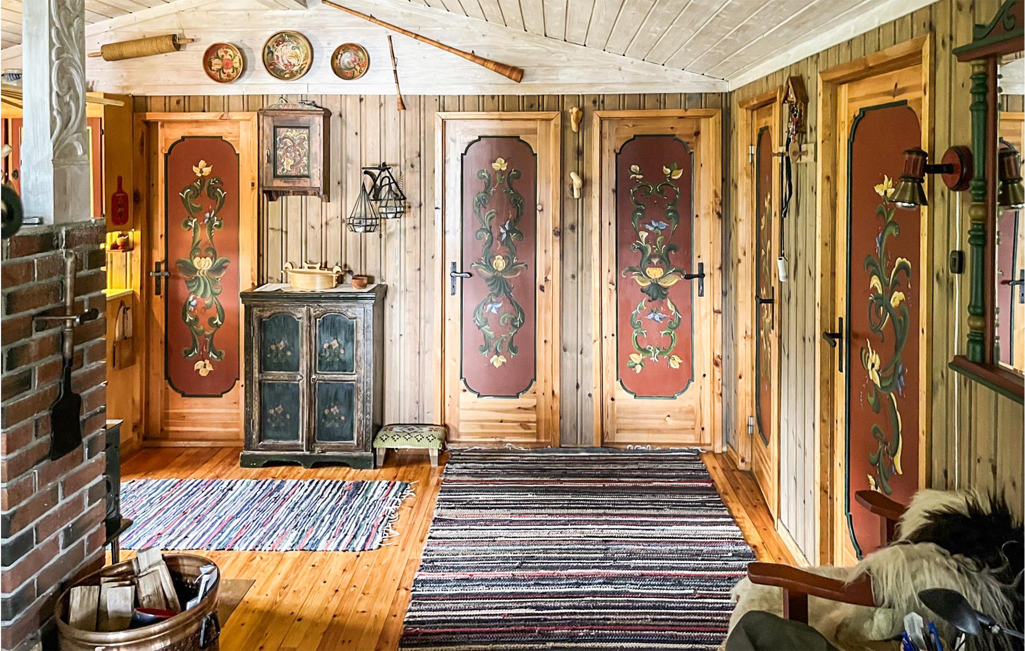 Dette feriehus, beliggende tæt på skoven, med en hjemlig atmosfære er en god base for aktive feriegæster og lystfiskere! Huset er fyldt med hyggeligt nips og kreative indslag som de smukt dekorerede døre. Tegn jeres vandrerute på kortet ved spisebordet om morgenen, og så er I afsted! Efter en lang dag indbyder kaffebordet til en sjov eftermiddag med brætspil og måske i aften i sofaen til en snak om morgendagens fisketur? Hvis I vil tilbage til naturen på ferie, er dette stedet for jer. Foran døren finder I et magiske bjerglandskab at opdage og en smuk sø til fisketure og svømning.