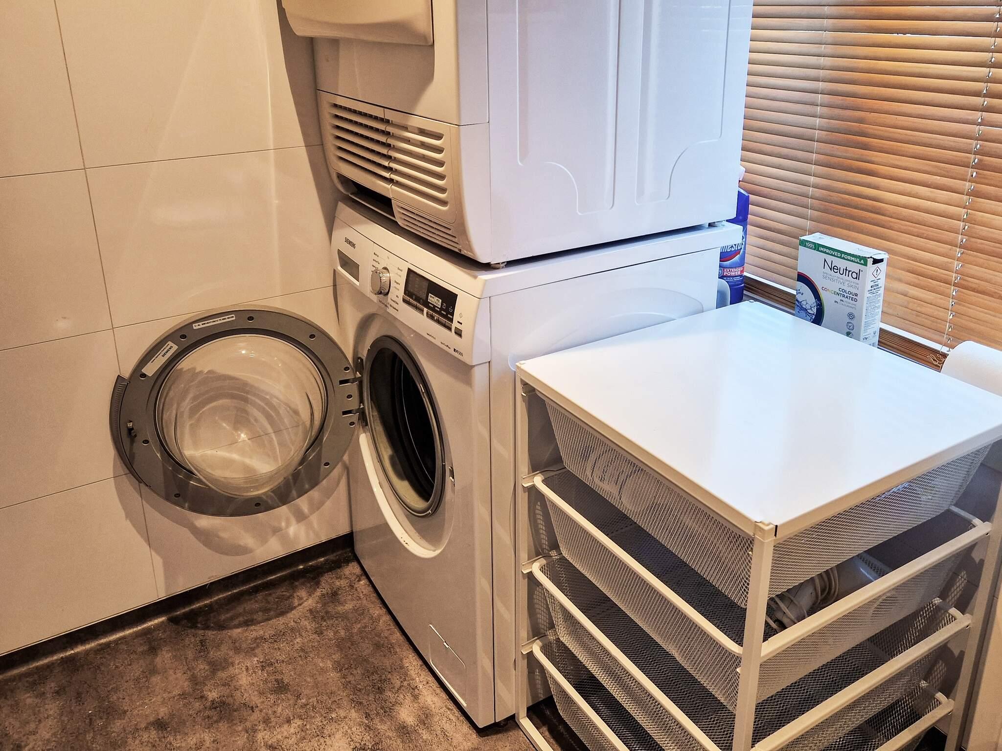 Køkken: høj stol, el-komfur, køleskab, fryser 200 - 249 l, mikroovn, emhætte, opvaskemask., vaskemask., tørretumbler, kaffetragt, vaffeljern