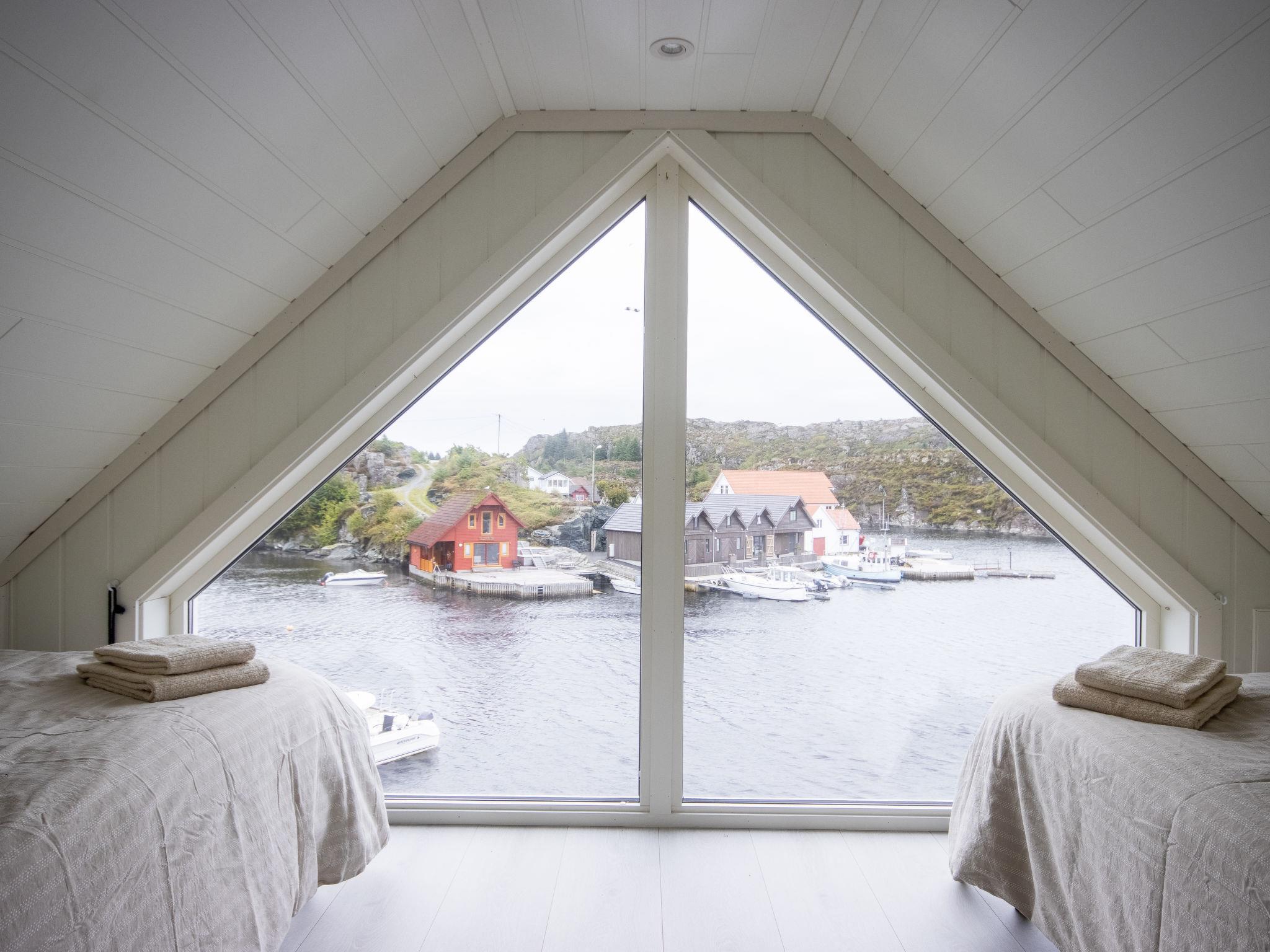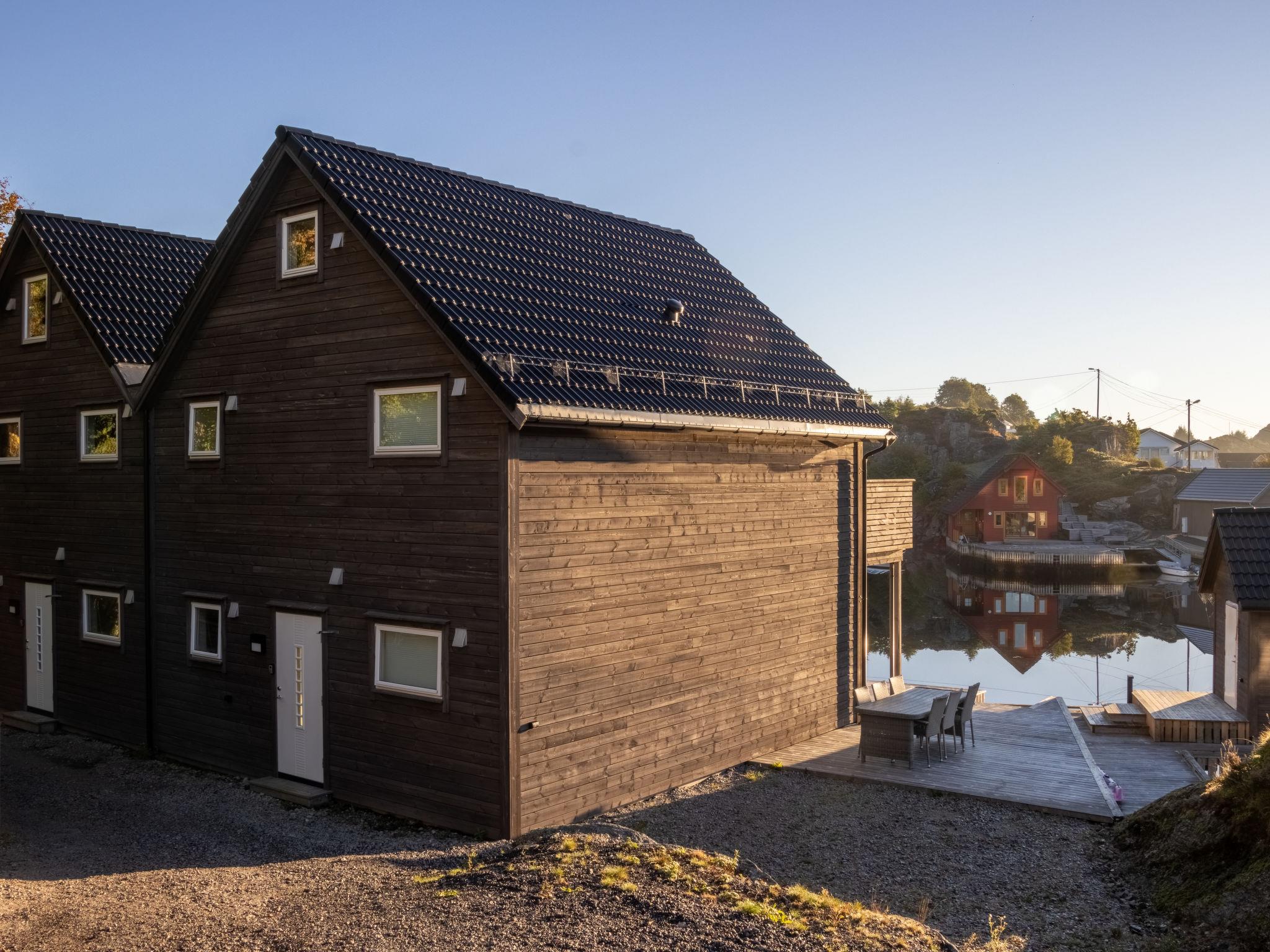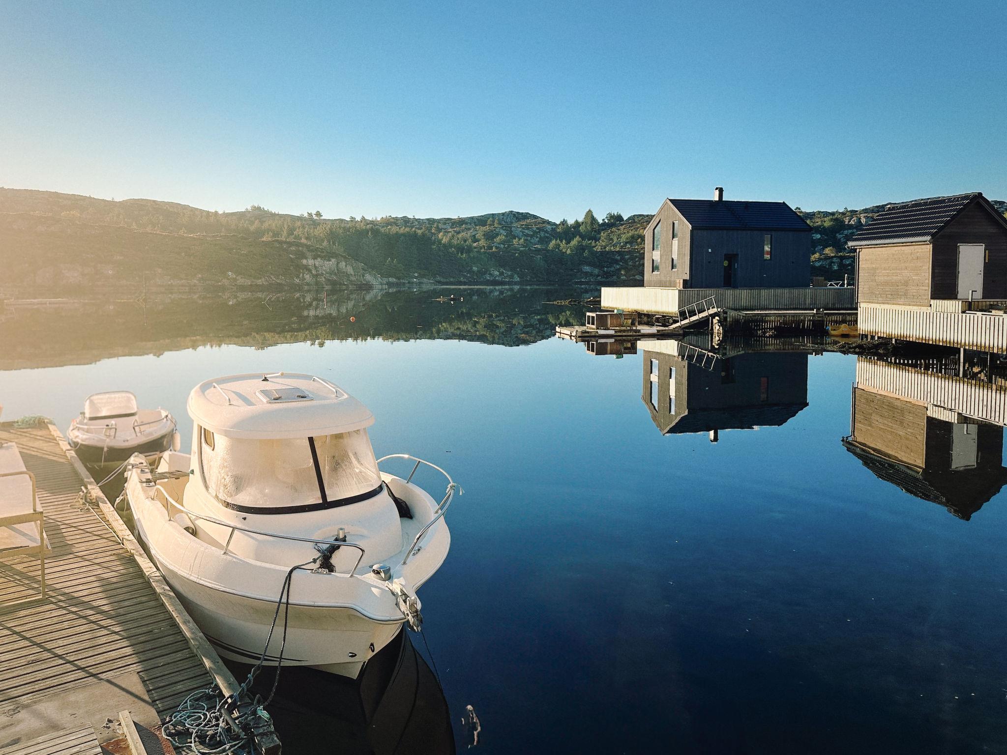 Very modern certified fishing house "Brosme", 3 m a.s.l., built in 2020. In the district of Kallavåg 2 km from the centre of Langevåg, 34 km from the centre of Haugesund, 47 km from the centre of Leirvik, 5 m from the sea, direct access to the beach, in a cul-de-sac. For shared use: natural state property 5 ha. Patio, barbecue house, bathing jetty bathing place, fish-processing table. Available: canoe (extra). Motor boat (on order). Steep motor access (via unmade road). Parking on the premises. Shop 2 km, bus stop "Kåso" 2 km, railway station "Stavanger" 117 km, ferry "Stavanger" 117 km, sandy beach 15 m (small). Fishing possibilities 5 m. Nearby attractions: Insel Espevaer 4 km, Wikingermuseum Avaldsnes 40 km. Please note: Additional accommodations can be booked. The house is located directly next to the sea in a very popular fishing area.