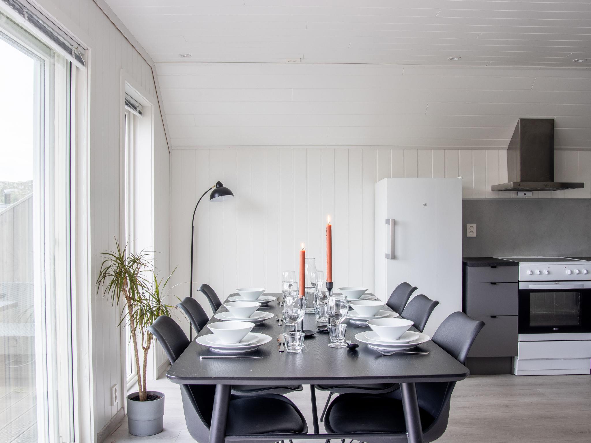 Very modern certified fishing house "Brosme", 3 m a.s.l., built in 2020. In the district of Kallavåg 2 km from the centre of Langevåg, 34 km from the centre of Haugesund, 47 km from the centre of Leirvik, 5 m from the sea, direct access to the beach, in a cul-de-sac. For shared use: natural state property 5 ha. Patio, barbecue house, bathing jetty bathing place, fish-processing table. Available: canoe (extra). Motor boat (on order). Steep motor access (via unmade road). Parking on the premises. Shop 2 km, bus stop "Kåso" 2 km, railway station "Stavanger" 117 km, ferry "Stavanger" 117 km, sandy beach 15 m (small). Fishing possibilities 5 m. Nearby attractions: Insel Espevaer 4 km, Wikingermuseum Avaldsnes 40 km. Please note: Additional accommodations can be booked. The house is located directly next to the sea in a very popular fishing area.