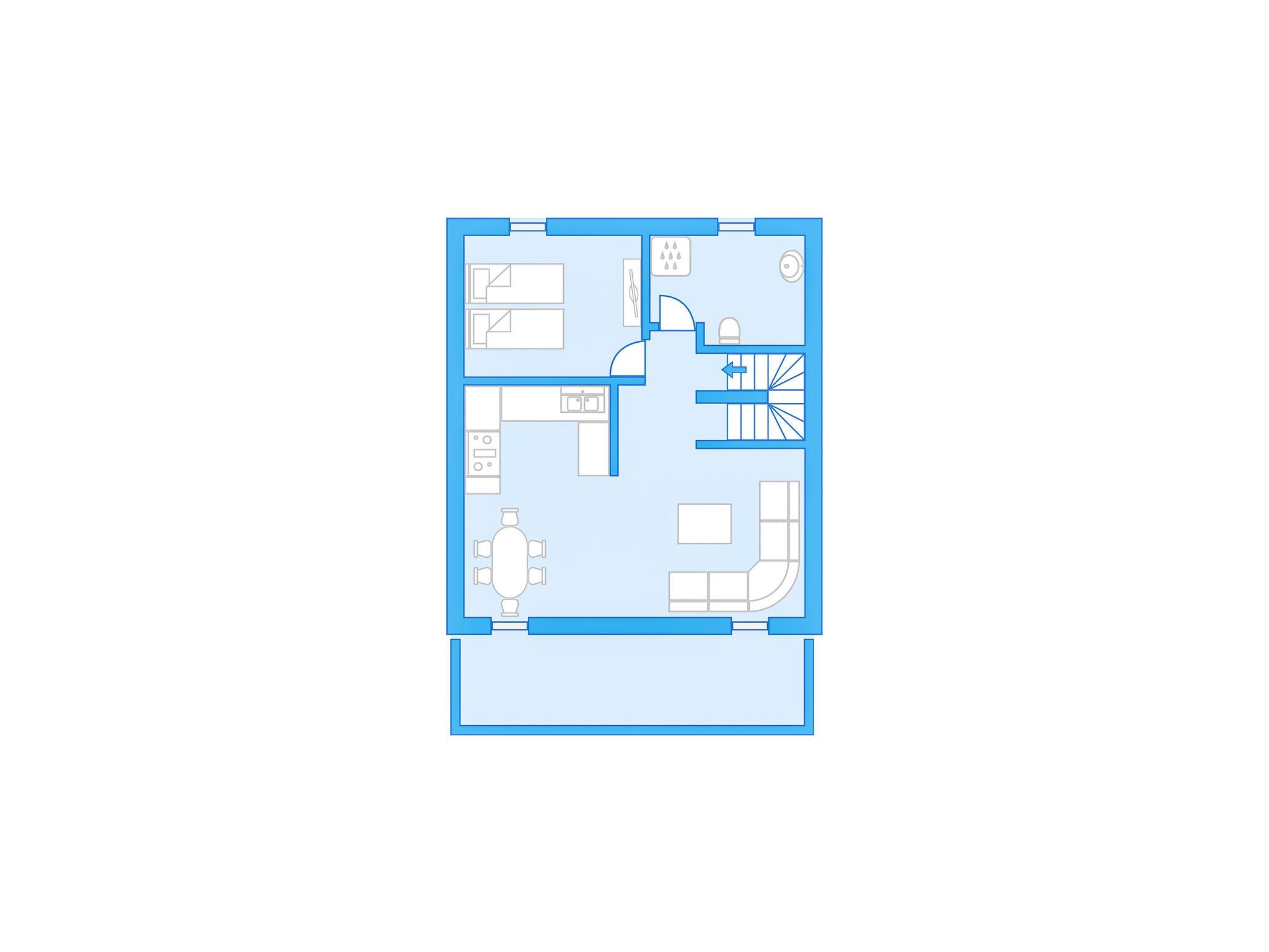 "Pale", 7-room semi-detached house 100 m2 on 3 levels. Modern and cosy furnishings: living room with cable TV (flat screen), radio and CD-player. Exit to the terrace. 2 rooms, each room with 1 bed (90 cm, length 200 cm). Shower/WC. Underfloor heating. Upper floor: living/dining room with dining table. Exit to the balcony. 1 room with 2 beds (90 cm, length 200 cm). Open kitchen (oven, dishwasher, 4 ceramic glass hob hotplates, toaster, kettle, microwave, freezer, electric coffee machine). Shower/WC. 2nd upper floor: 2 rooms with sloping ceilings, each room with 2 beds (90 cm, length 200 cm). Electric heating. Wooden floors. Balcony 12 m2, terrace roofed. Terrace furniture, barbecue (portable). Beautiful view of the sea. Facilities: washing machine, dryer, children's high chair, baby cot. Internet (WiFi, free). Parking at 50 m. Please note: non-smoking house. Smoke alarm, fire extinguisher. Freezer approx 300 l. 924531169