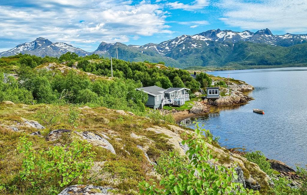 Dette skønne feriehus har en smuk beliggenhed på Lofoten lige ud til vandet.