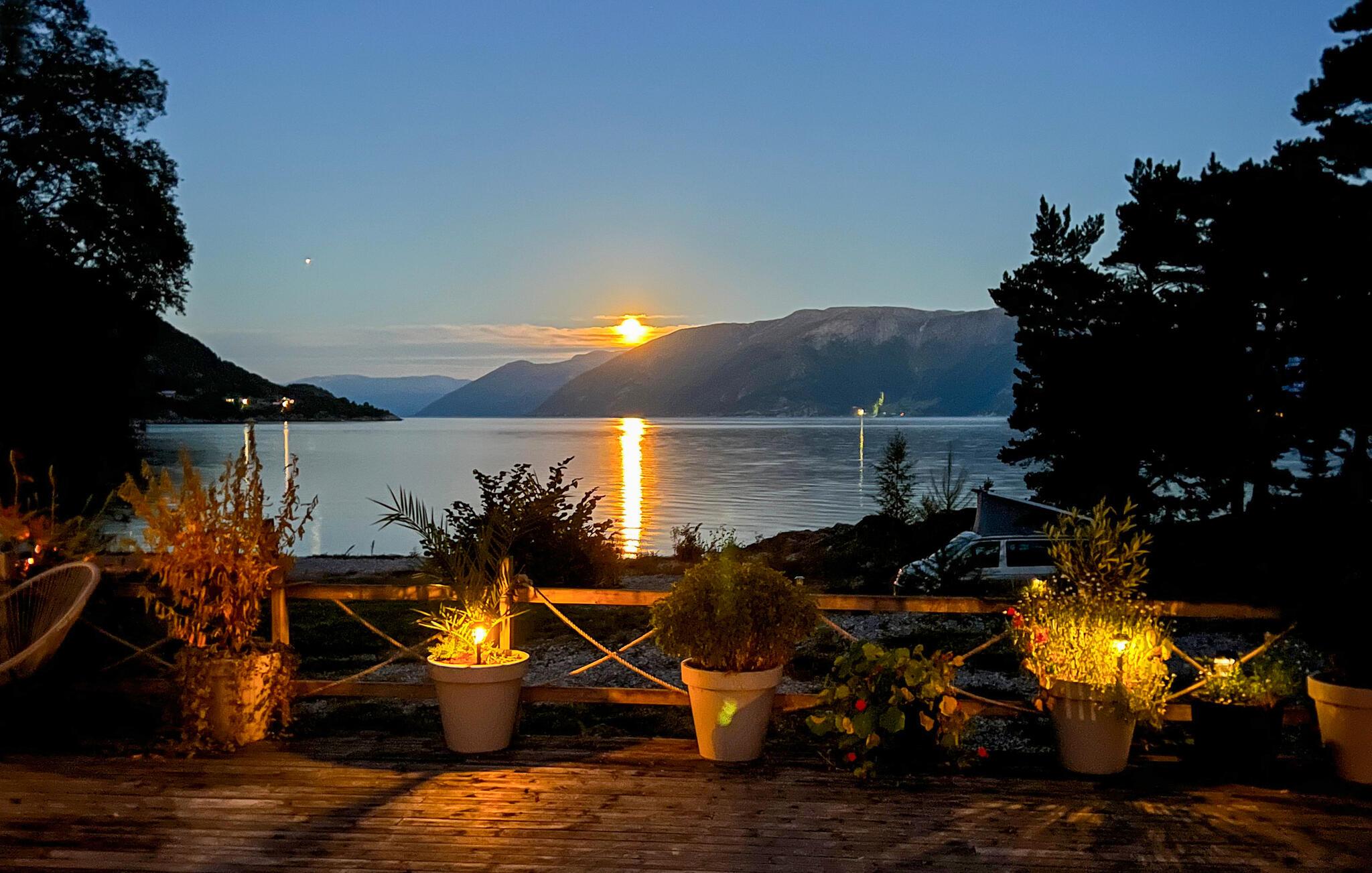 Gå ud på terrassen i morgensolen med en god kop kaffe og nyd en solid morgenmad. Tag en dyb indånding og lad jer fortrylle af den kraftfulde ro i fjordlandskabet. For børnene er der en sandkasse, en rutsjebane og udendørs legetøj.