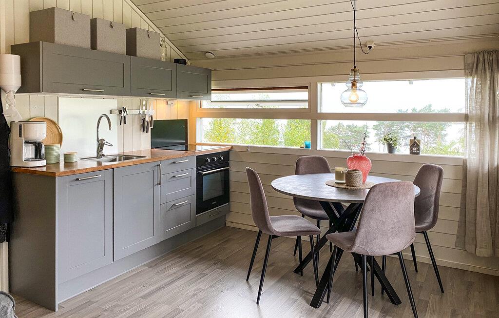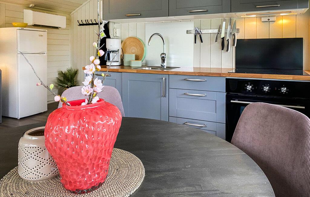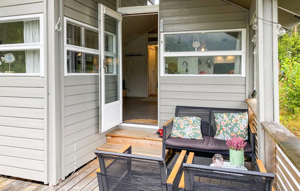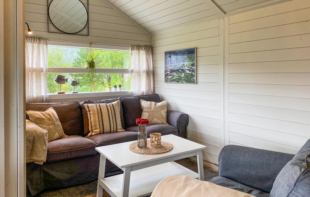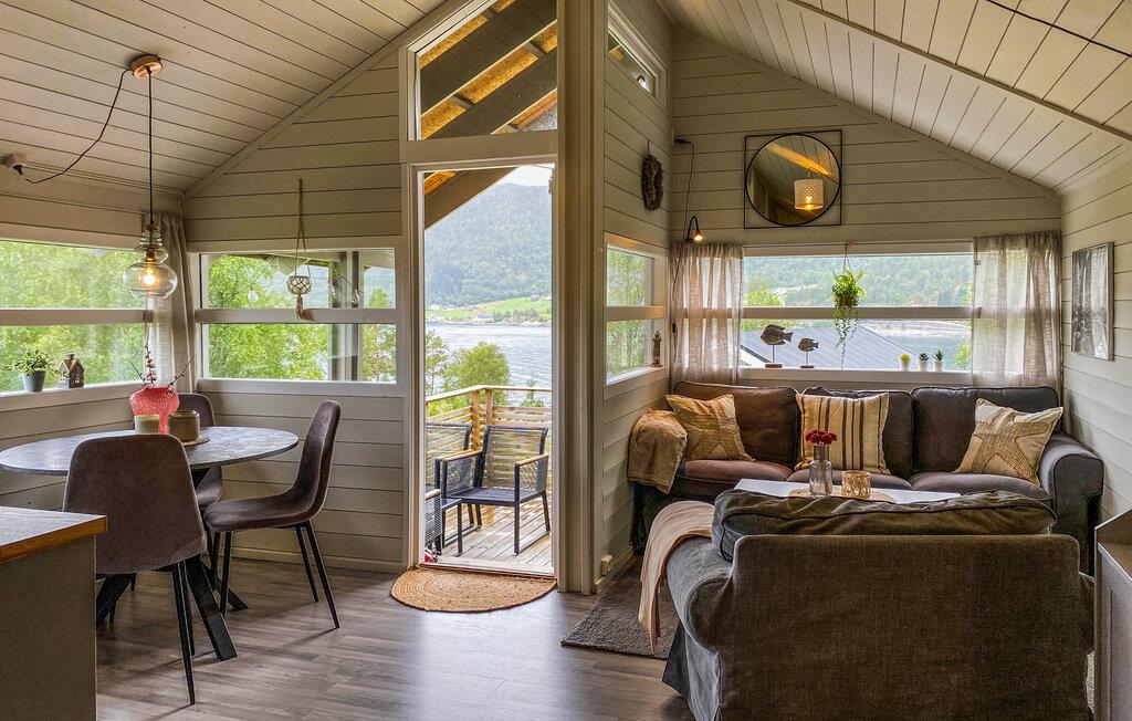 Dette smukke træhus kombinerer rustik charme og hygge på harmonisk vis. Masser af klart dagslys strømmer ind gennem vinduerne, mens I nyder en charmerende udsigt over fjorden. Uanset om I snakker over en kop kaffe, laver mad sammen eller slapper af, mens I lytter til musik – her sætter I dagens tempo.