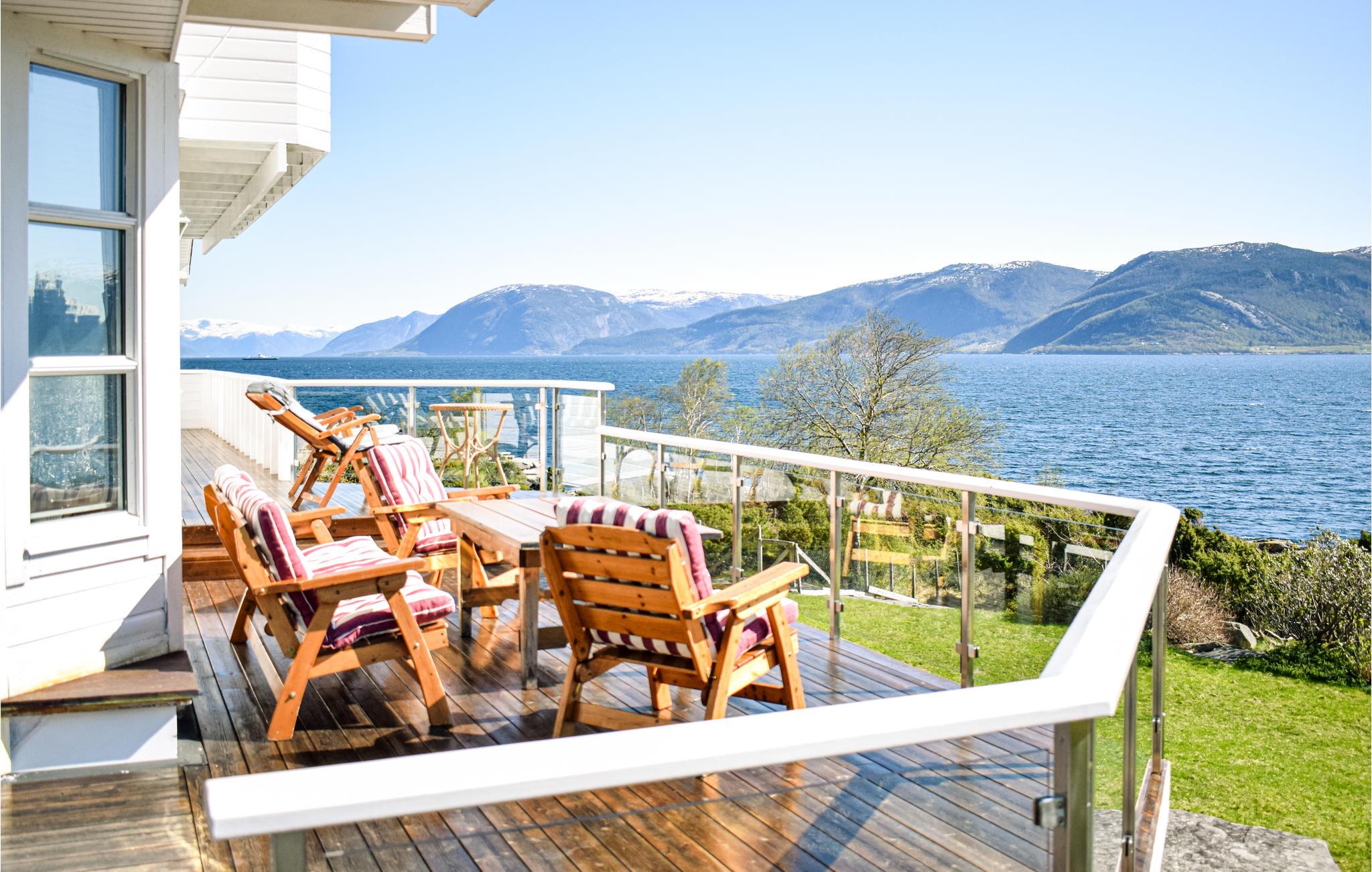 Nyd jeres ferie i dette vidunderlige feriehus med en stor terrasse og en fantastisk fjordudsigt. Dette rummelige hus tilbyder masser af plads til hele familien, så I føler jer hjemme fra dag ét. Denne stilfulde bolig inviterer jer til at slappe af sammen; skab en særlig hyggelig atmosfære med ild i brændeovnen.