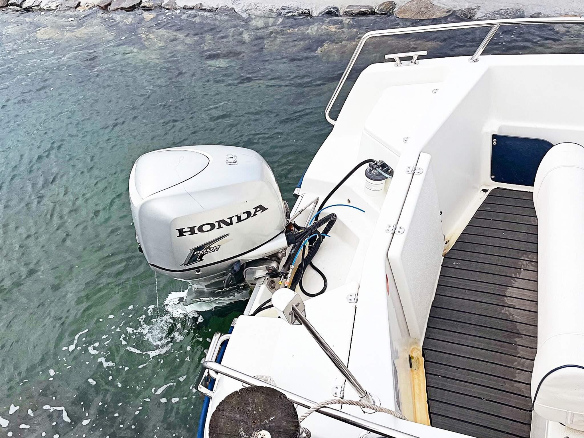 - 19 fots Ryds 565 med 75 HK Honda, 4-takts motor, GPS/kartplotter/Ekkolodd Raymarine Dragonfly 7, 8 stangholdere. Båten ligger ved flytebrygge 20 meter unna. Overdekket fileteringsplass med lys og rennende vann. Flytevester inkludert ved leie av båt.