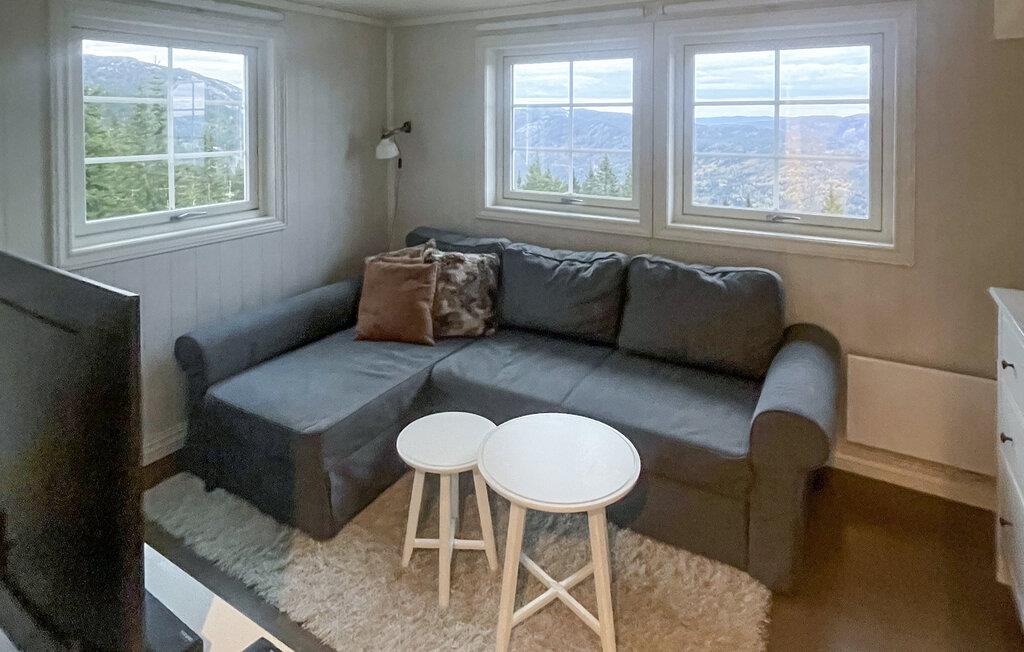 Nyd den friske bjergluft i jeres feriehus på Lifjell og lad jer fortrylle af den betagende udsigt fra terrassen. Sæt jer til rette i den indbydende siddegruppe udendørs, ideel til hyggelige stunder med en varm drik eller en solid morgenmad, mens I starter dagen. Inde i huset venter en hyggelig, hjemlig atmosfære. Den rummelige stue med store vinduer byder ikke kun på en fantastisk udsigt over den omkringliggende natur, men også masser af plads til afslapning. Gør det behageligt på de komfortable sofaer, mens I nyder den rolige atmosfære til fulde.