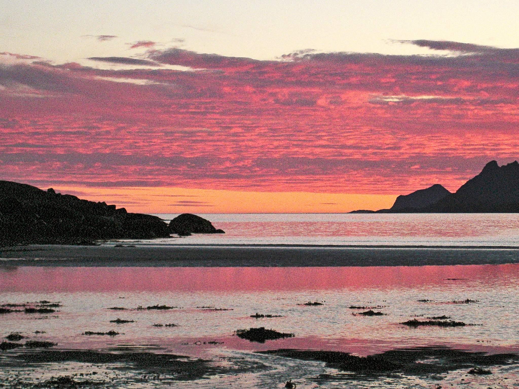 Landskapet her er storslått. De høye fjellene Svartsundtindan i vest rager 1050 m.o.h., og med isbree på toppene er de et imponerende skue.