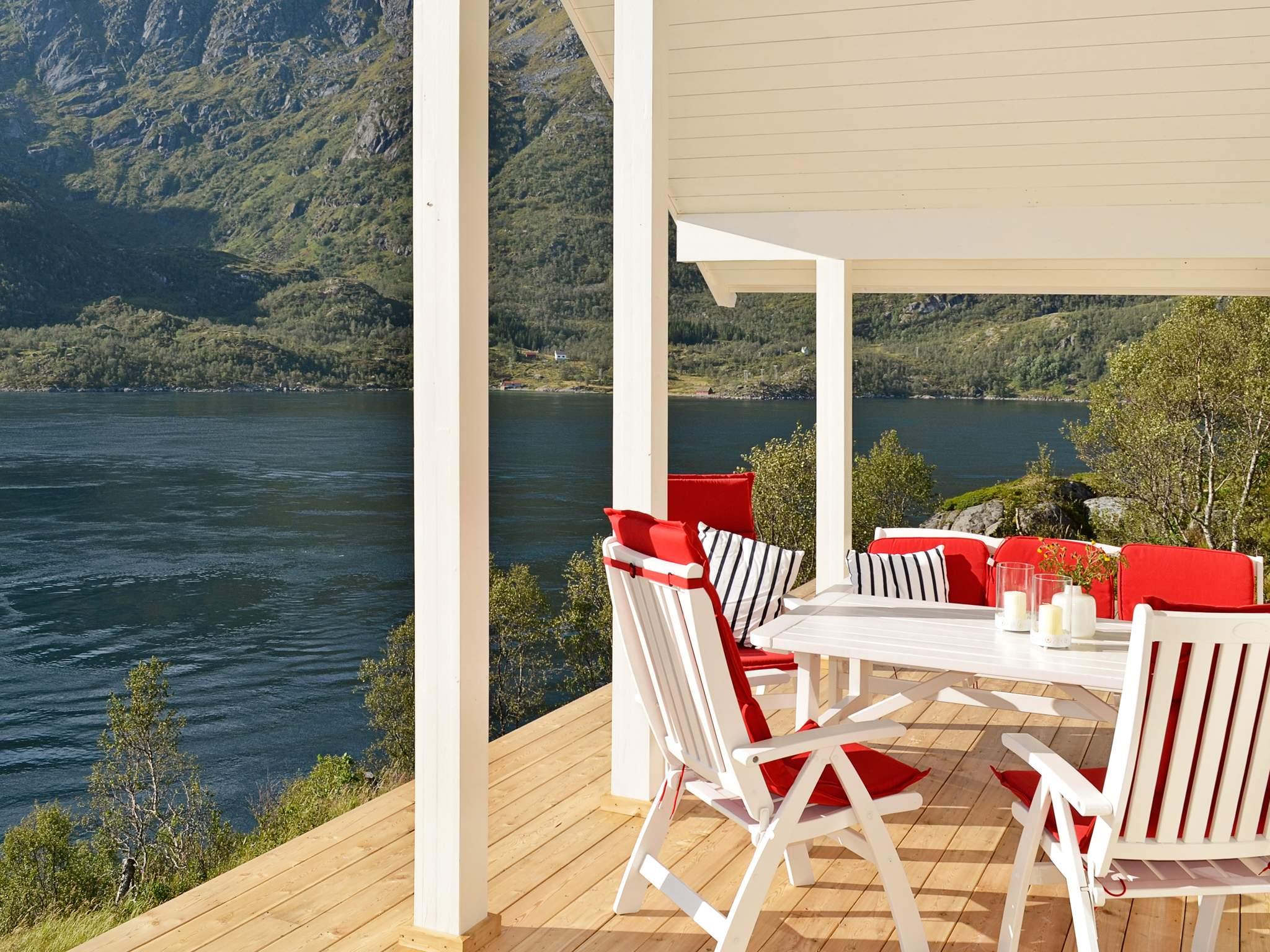 Med praktfull utsikt mot Raftsundet ligger denne komfortable hytta lengst øst i Lofoten.