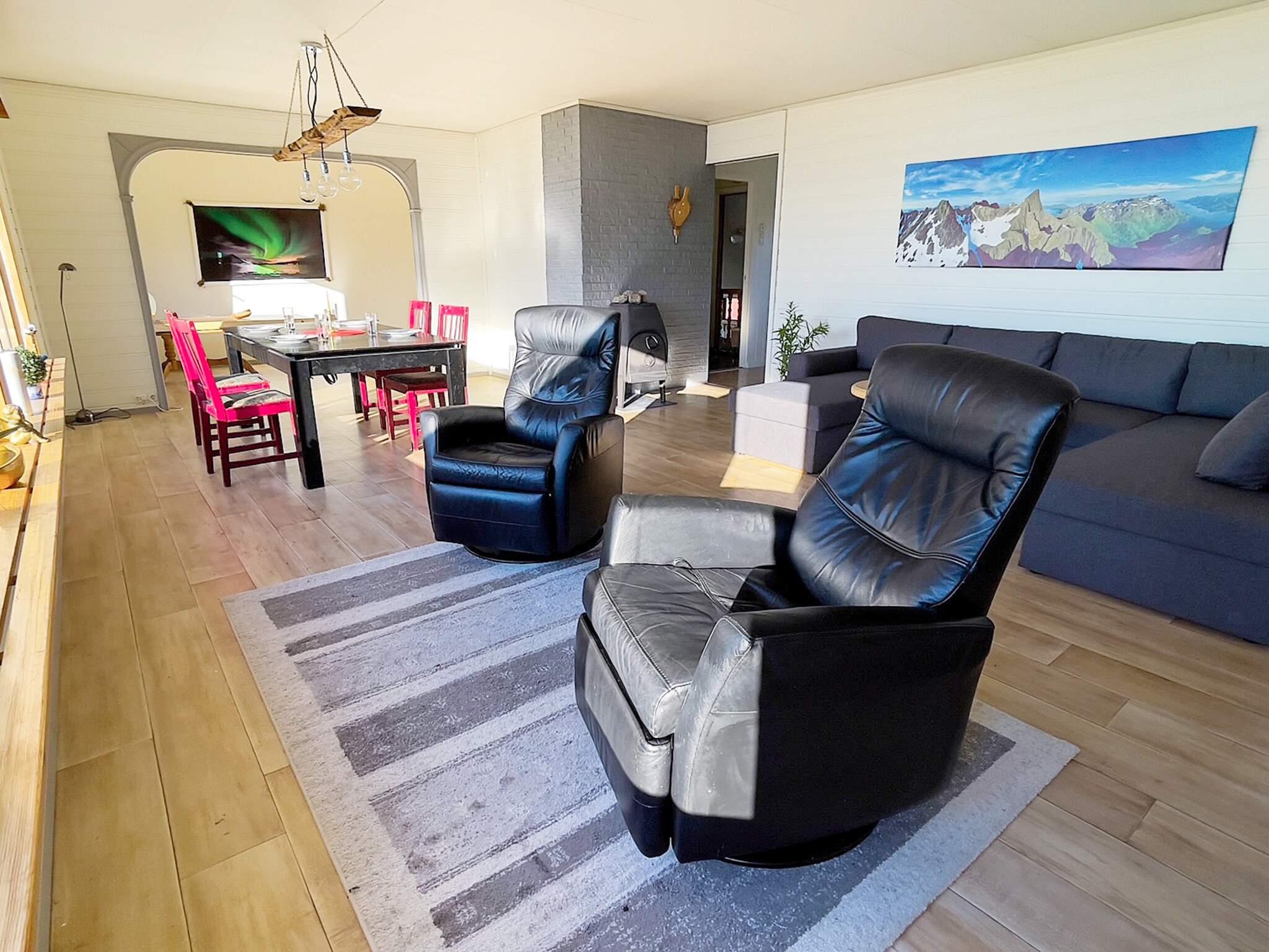 Feriehus på utsiktstomt ved Morfjorden på Austvågøyas nordside. Fra huset og terrassen er det storslått utsikt utover det vakre fjordlandskapet, solnedgangen på kveldene og midnattssola. Fint område for fjellturer og toppturer på ski på vinteren. Rikt sjøfiske i fjorden, båter 20 fot med 60 hk motor kan leies.