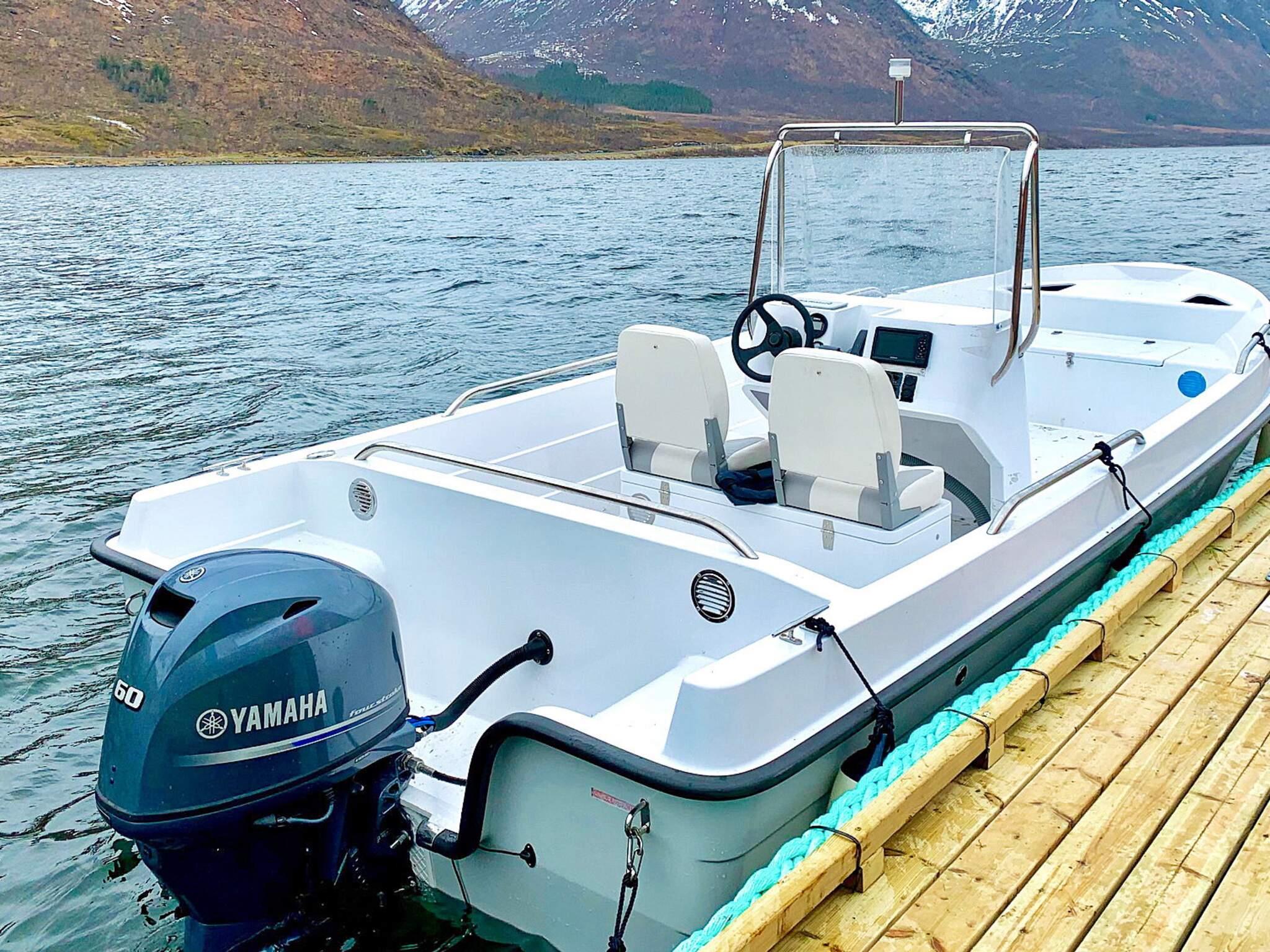 Rikt sjøfiske. Du kan fiske inne i fjorden eller i det åpne havområdet utenfor. I tillegg til vanlig sjøfisk er her laks og sjøørret i fjorden. 20 fots selvlensende åpen båt med styrekonsoll og 60 hk motor kan leies, ekkolodd, kartplotter, gps og stangholdere kan leies. Båtene ligger ved flytebrygge i båthavn på Fiskebøl, 9 km fra huset.