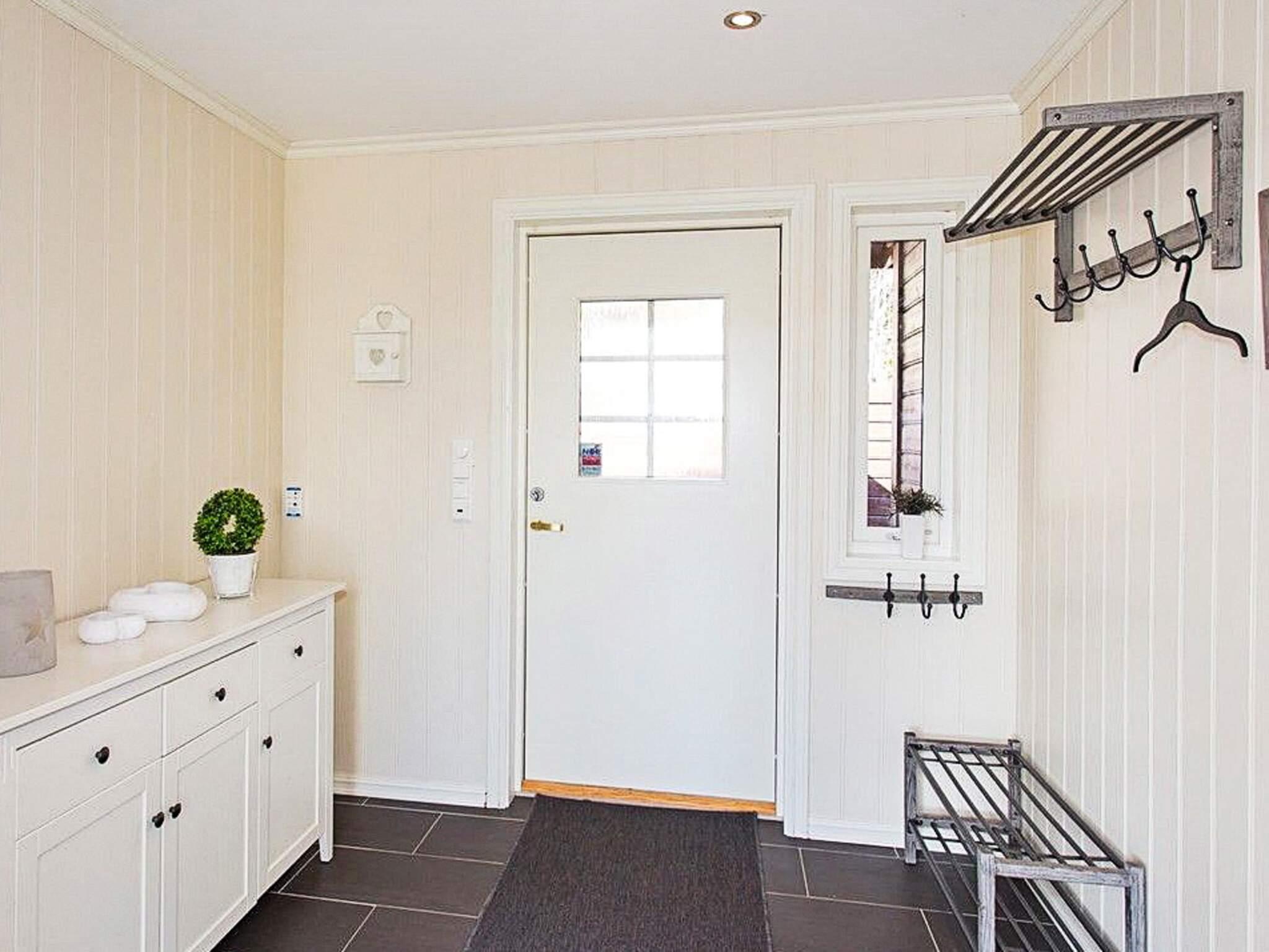 Hytta inneholder 2 stuer og et stort bad, samt 4 soverom med hver 2 senger (120cm): 2 på stueplan og 2 på hems, hvor det også er flott utsikt mot sjøen. 2 ekstra madrasser er tilgjengelig. Det er grind på trappa mellom etasjene. Gulvvarme i alle rom på stueplan. Flott kjøkken i hvit høyglans med integrerte hvitevarer og et dobbelt kjøl/fryseskap. Du finner også DVD, TV, parabol (Canal Digital).